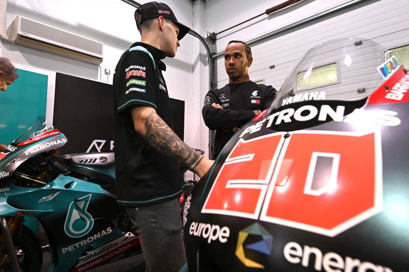 On connaît la passion du sextuple champion du monde de Formule 1 pour le MotoGP, à tel point que Lewis Hamilton possède personnellement deux Yamaha R1 préparées par Crescent pour rouler sur les circuits une fois la saison de F1 achevée.