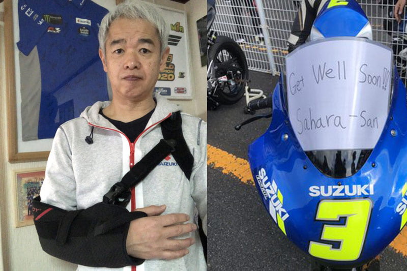 Hélas, ce qui sur le papier se présentait comme une belle journée d’amusement s’est vite transformé en calvaire pour le Project Leader Suzuki MotoGP, d’abord à cause de la météo glaciale qui régnait sur le Japon, puis d’une chute lors des entraînements qui contraignait l’homme à renoncer à participer à l’épreuve.