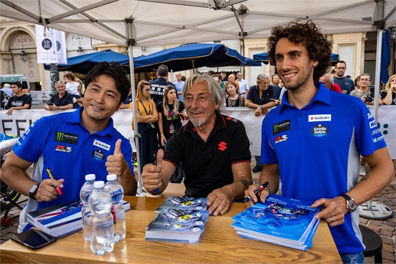 Le Test de Misano, qui suivait directement le GP de Saint-Marin, a donné à Álex Rins et Kazuki Watanabe l’occasion de rester en Italie et de rejoindre Suzuki Italia dans la ville de son siège social, Turin, pour un événement spécial qui a mis en relation le public avec les deux pilotes et leur Team Manager, Livio Suppo.