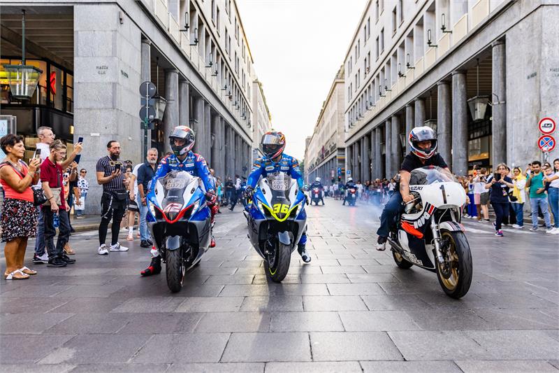 Le Test de Misano, qui suivait directement le GP de Saint-Marin, a donné à Álex Rins et Kazuki Watanabe l’occasion de rester en Italie et de rejoindre Suzuki Italia dans la ville de son siège social, Turin, pour un événement spécial qui a mis en relation le public avec les deux pilotes et leur Team Manager, Livio Suppo.