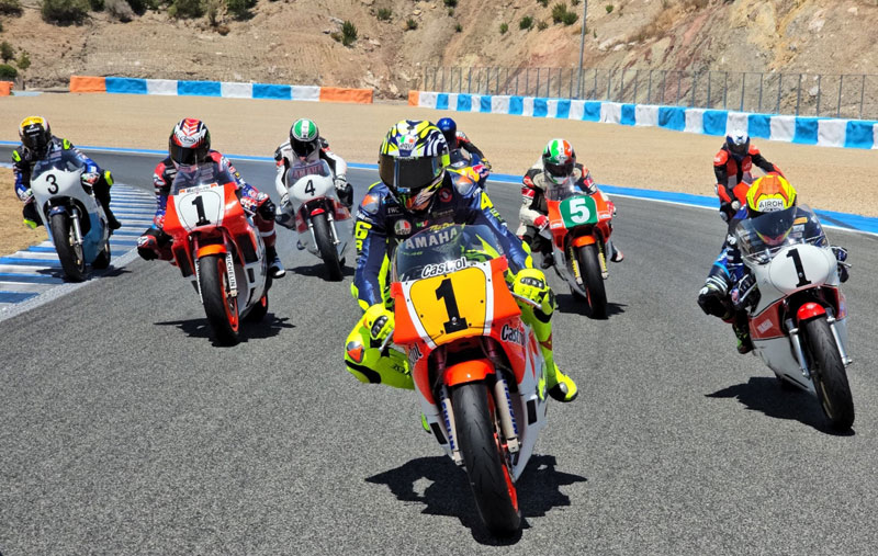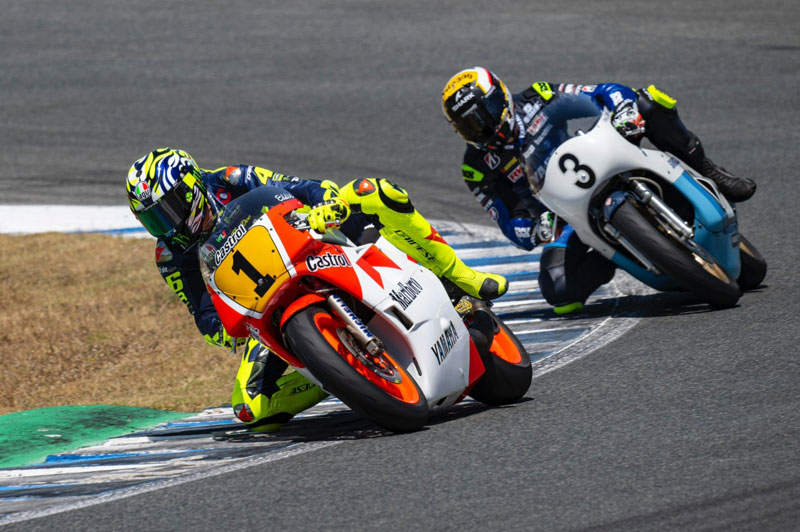 Pour l’anecdote, Lin Jarvis a ensuite pris le guidon de la R1, pendant que le Doctor goutait aux joies des 2-temps iconiques de la marque aux trois diapasons…