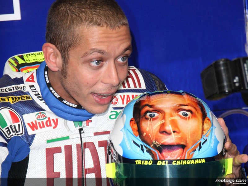 « Bonjour à tous ! Nous sommes en Italie mais je ne vais pas vous donner une leçon d’Italien. C’est vraiment bien car nous sommes le jour de la course, à Monza, j’avais gardé ça pour le jour de la course. C’est un casque hommage à une légende du sport moto italien, le seul et unique Valentino Rossi. Vous vous souvenez peut-être d’un casque porté au Mugello ? Je pense que c’était en 2008, et bien voilà ! Je ne sais pas si je suis aussi beau que Valentino, mais c’est assurément un casque fun. Et ce casque partira quatrième sur la grille, donc je suis excité et j’espère que mon visage ressemblera à ça en passant la ligne d’arrivée. »
