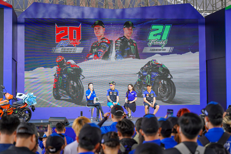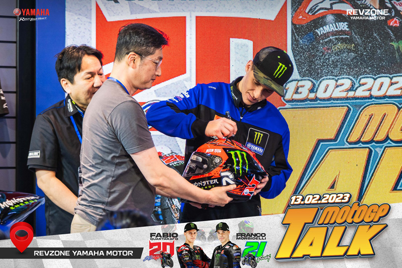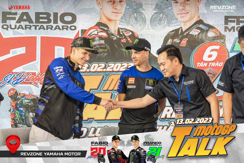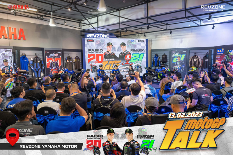 C’est ainsi qu’après avoir participé au test MotoGP à Sepang, en Malaisie, Fabio Quartararo s’est directement envolé pour le Vietnam pour une apparition au RevZone Yamaha Motor Saïgon, c’est à dire le groupement de concessionnaires pour les motos de grosses cylindrées de Yamaha Motor Vietnam. Là, accompagné de Franco Morbidelli, le champion du monde 2021 s’est prêté de bonne grâce aux traditionnelles séances de réponses aux questions, signatures d’autographes et autres selfies (Voir photos en bas d’article).