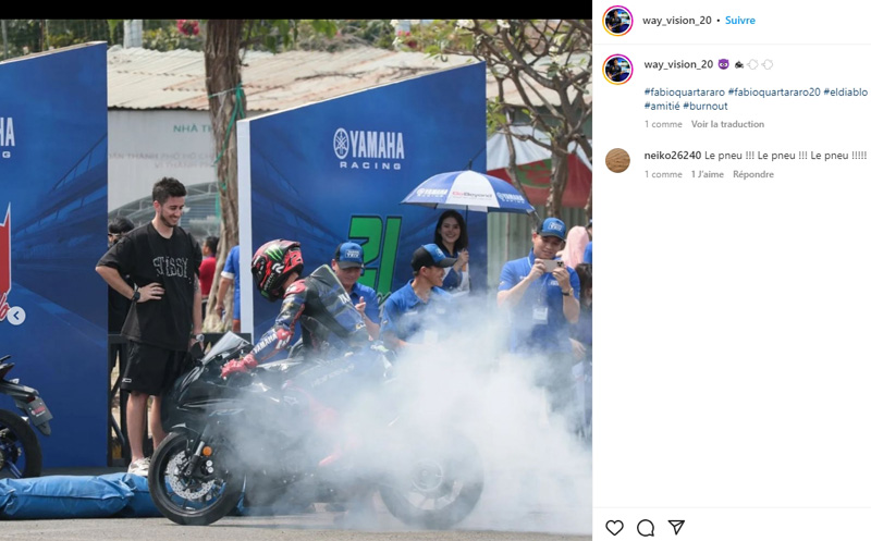 Mais pour un tel événement, les Vietnamiens avaient fait les choses en grand et l’action s’est également déroulée au stade Phu Tho, où Fabio Quartararo a pu se laisser aller à quelques démonstrations spectaculaires au guidon d’une Yamaha R7.