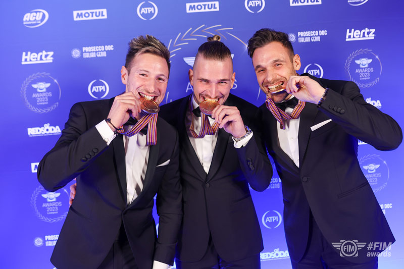 Mattia Casadei (HP Pons Los40), le tout premier Champion du Monde FIM Enel MotoE™ puisque la série électrique est devenue un Championnat en 2023, a également foulé le tapis rouge et reçu sa médaille. Parmi les autres personnes présentes figuraient le champion du monde MOTUL FIM Superbike 2023, Alvaro Bautista, et le champion Finetwork FIM JuniorGP™ 2023, Angel Piqueras, ce dernier avant son passage au championnat du monde Moto3™ l’année prochaine.