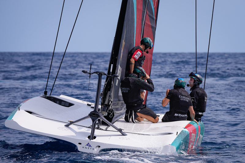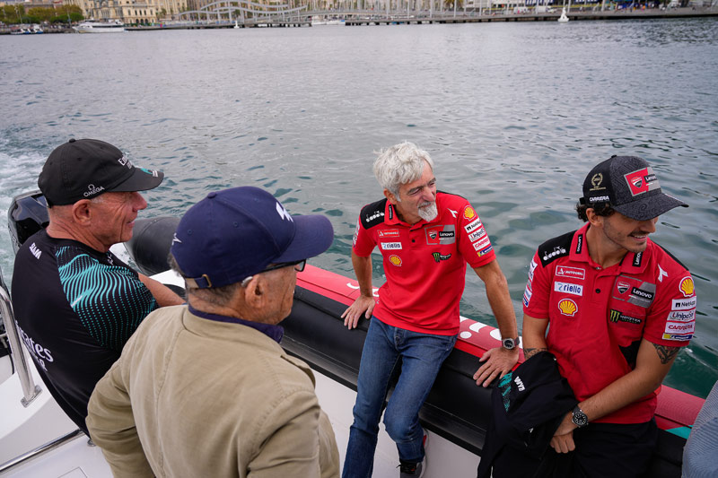 Francesco Bagnaia et Luigi Dall’Igna ont visité la base de l’équipe néo-zélandaise dans le port de Barcelone et ont rencontré certaines des figures clés de l’incroyable succès de l’équipe, y compris le PDG Grant Dalton et le skipper et barreur vainqueur en 2021, Peter Burling. Ils ont été rejoints à la base par le PDG de Dorna, Carmelo Ezpeleta, le ministre catalan de l’Entreprise et du Travail, Roger Torrent, et le PDG du Circuit de Barcelona-Catalunya, Oriol Sagrera,… puis il était temps de prendre la mer !