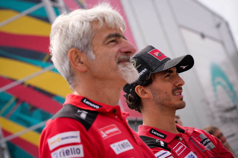 Avant l’action en piste sur l’emblématique Circuit de Barcelona-Catalunya, Francesco Bagnaia (Ducati Lenovo Team) et Luigi Dall’Igna, Directeur Général de Ducati Corse, ont eu l’opportunité de rencontrer quelques icônes d’une discipline différente : Emirates Team New Zealand, alias les actuels détenteurs de la Coupe de l’America.
