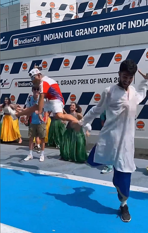 La plupart des membres du paddock MotoGP sont maintenant arrivés sur le Buddh International Circuit et, pendant que les mécaniciens se sont jetés sur les motos pour rattraper le temps perdu à cause du « visagate », les pilotes déjà présents ont pu se familiariser avec le tracé… et la danse locale.