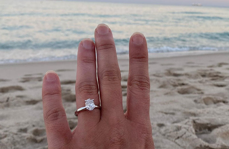 « Je suis tombé à genoux d’une manière différente aujourd’hui, celle-ci étant définitivement beaucoup plus effrayante. J’ai tellement de chance de t’avoir. Je t’aime. J’ai hâte de passer nos vies ensemble !! »