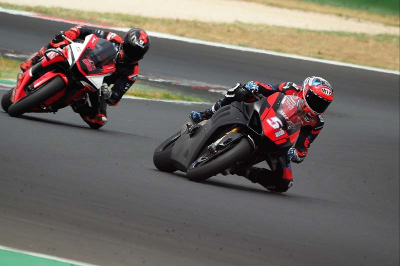 L’ex-pilote d’essai Yamaha avec le pilote d’essai Ducati ensemble sur la piste à Misano : pour un peu on se serait cru 3 ans en arrière !