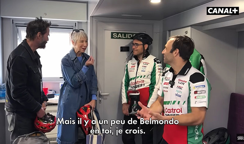 Le troisième épisode de la saison 2 de série produite par Canal+, « Team Zarco« , nous montre cette rencontre, aussi sympathique qu’inattendue, entre l’expérimenté pilote MotoGP et le canado-américain qui a incarné Neo et John Wick sur les écrans. Beaucoup moins violent et plus décontracté que dans ses différents rôles au cinéma, le cofondateur de la marque de motos Arch Motorcycles avoue sa passion pour le MotoGP en général et pour Johann Zarco en particulier, comme l’explique sa femme Alexandra : « il a toujours été un grand fan de toi ! Je pense que c’est parce que tu es plus âgé et plus mature, mais très compétitif ».