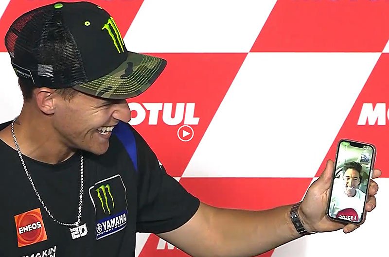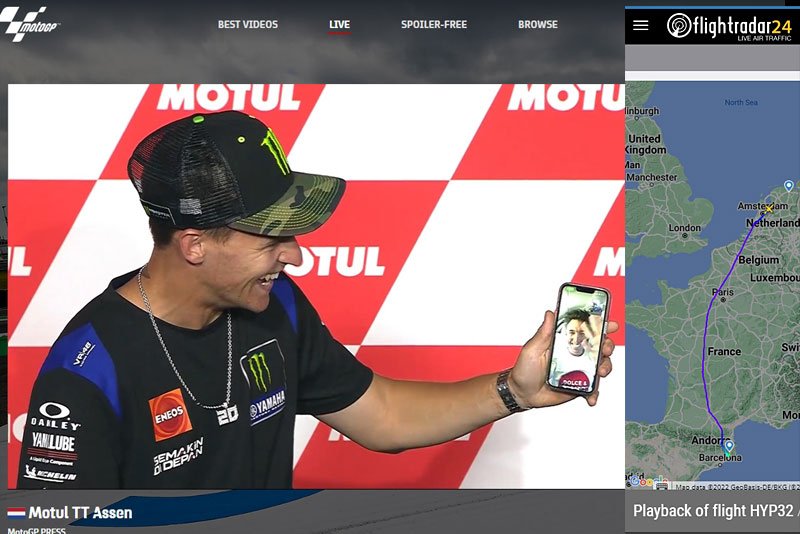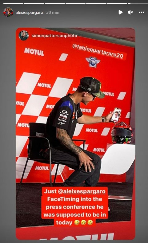 Mais depuis l’avion en question, alors qu’il était encore à quelques minutes d’atterrir, Aleix Espargaró a appelé Fabio Quartararo pendant la conférence pour s’excuser de son absence, ce qui a déclenché les rires des intéressés et du public.