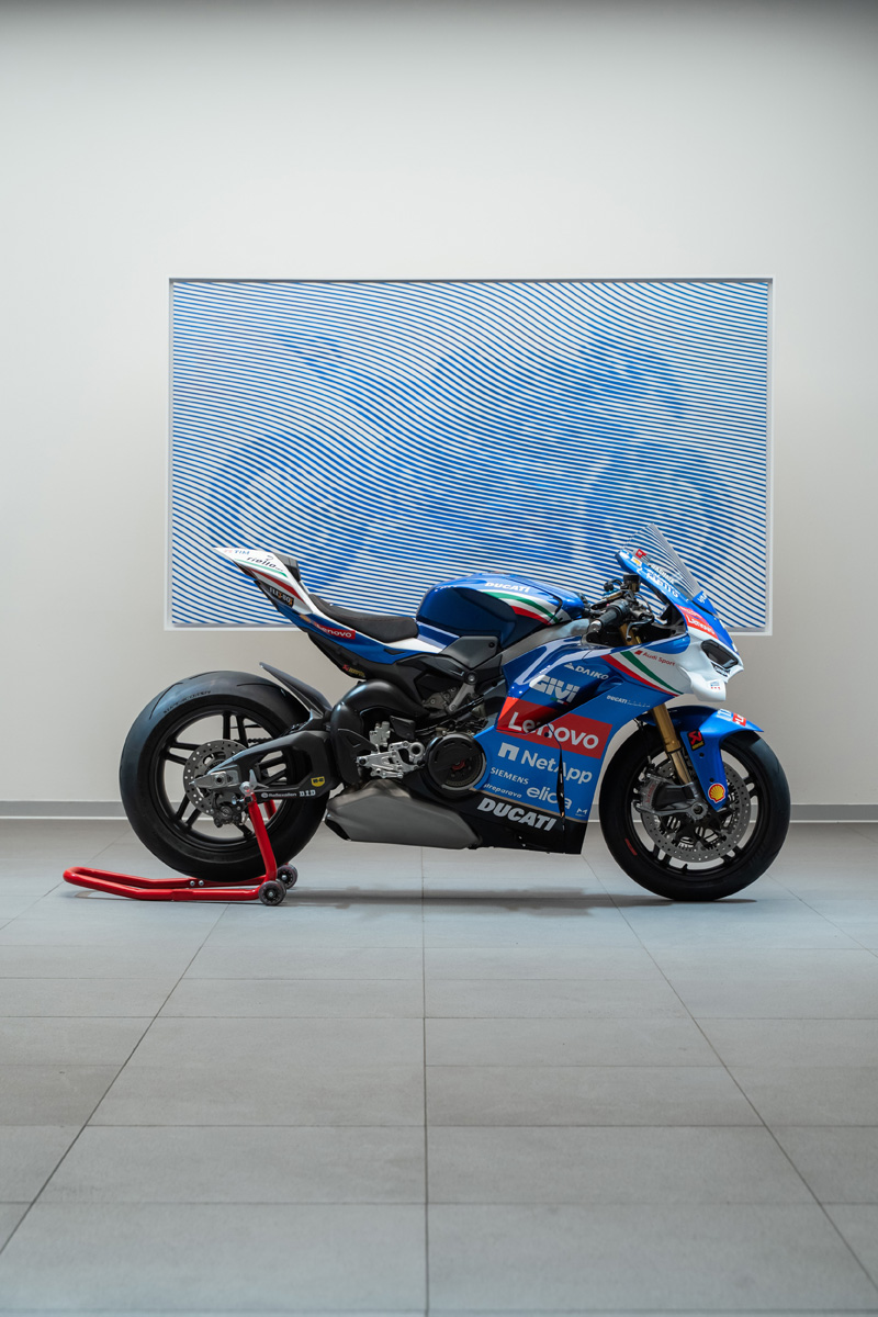 De cette œuvre est née une série limitée de 163 lithographies, réservées aux passionnés qui ont choisi la Panigale V4 Tricolore Italia. Chaque lithographie, numérotée et signée par Crespi, porte le même numéro que le modèle de moto auquel elle est associée, afin de souligner son caractère unique et exclusif.