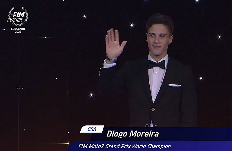 Diogo Moreira : « Bonjour à tous, bonsoir. Oui, au final, quand j’étais enfant, mon rêve était de devenir champion du monde en supercross ou en motocross. Donc oui, ma vie a beaucoup changé. Aujourd’hui, je suis devenu champion du monde Moto2 et, oui, nous verrons ce que l’an prochain nous réserve. Ce sera assurément une saison très difficile. »