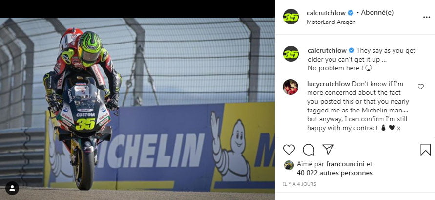 À l’issue du Grand Prix d’Aragón, Cal Crutchlow a publié sur Instagram une photo d’un spectaculaire stoppie au guidon de sa Honda RC 213 V. Jusque-là, il n’y a rien d’inhabituel pour un pilote MotoGP, à l’image d’un Jack Miller qui s’en est même fait une spécialité.