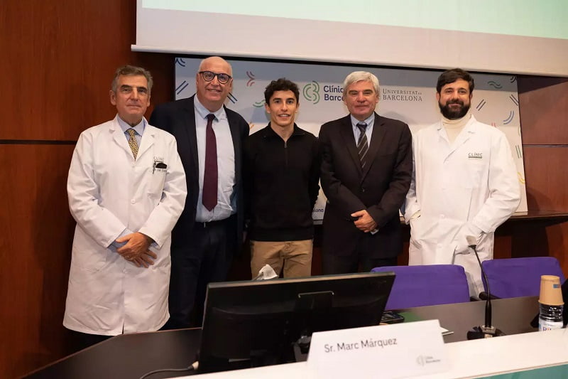 Aux côtés du directeur de la Clínic Barcelona, Josep M. Campistol, du directeur de l’Institut Clínic d’ophtalmologie, Alfredo Adán, et du responsable du projet, Jorge Peraza, Marc Márquez a déclaré : « Quand je subissais la diplopie, non seulement je ne pouvais pas courir en compétition, mais c’était aussi que je n’étais pas autonome, car je ne pouvais pas me déplacer en voiture et dépendait des autres. Je ne pouvais pas non plus lire avec les deux yeux ouverts. La blessure à l’épaule fait mal, mais parfois on peut l’oublier, mais quand on voit double, on ne peut pas l’oublier de toute la journée, seulement quand on dort. Je suis donc fier d’être un ambassadeur de ce projet et de pouvoir aider à améliorer la santé visuelle de nombreuses personnes. Voir est un trésor, et après tous les problèmes de vision que j’ai eus, je l’apprécie encore plus, et je suis encore plus excité de faire partie de cette initiative. Notre aide atteindra directement de nombreux patients, mais aussi des professionnels en Haïti qui pourront former et soigner davantage de personnes. Je serai toujours reconnaissant à Hospital Clínic pour toute l’aide reçue avec ma blessure à l’œil, c’est pourquoi je leur fais entièrement confiance. Quand ils m’ont demandé si je voulais rejoindre ce projet de coopération, je n’ai pas hésité un instant, il était très clair que la Clínic et l’ophtalmologie étaient la combinaison parfaite. »