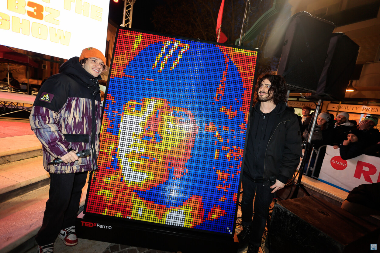 La foule s’est déplacée dans une Piazza Pascoli pleine à craquer pour le pilote VR46 Ducati de 25 ans. Mauro Sanchini, voix de Sky Sport MotoGP, a dirigé la soirée organisée par le Fan Club de Bezzecchi. Il y a également eu un défi Rubik’s Cube avec un champion, Giovanni Contardi de Pesaro, qui a finalement gagné. Marco Bezzecchi, quant à lui, a reçu une photo de son visage faite de briques du jeu.