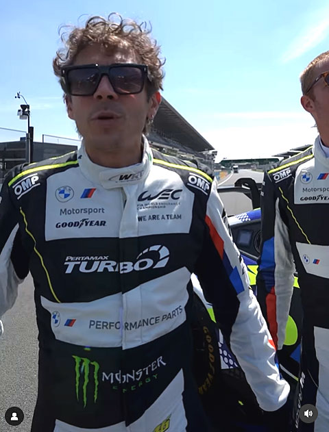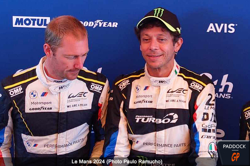 Outre le fait d’espérer un 10e titre mondial en MotoGP, Valentino Rossi avait un deuxième rêve; participer à la mythique épreuve des 24 Heures du Mans sur quatre roues. En attendant une éventuelle participation en Hypercar en 2025, l’objectif de l’Italien a pris corps ce vendredi 7 juin 2024 sur la place de la République de la préfecture sarthoise, quand la star de la moto s’est présenté au pesage de sa BMW M4 #46, engagée en catégorie LM GT3  par le team WRT du Belge Vincent Vosse.