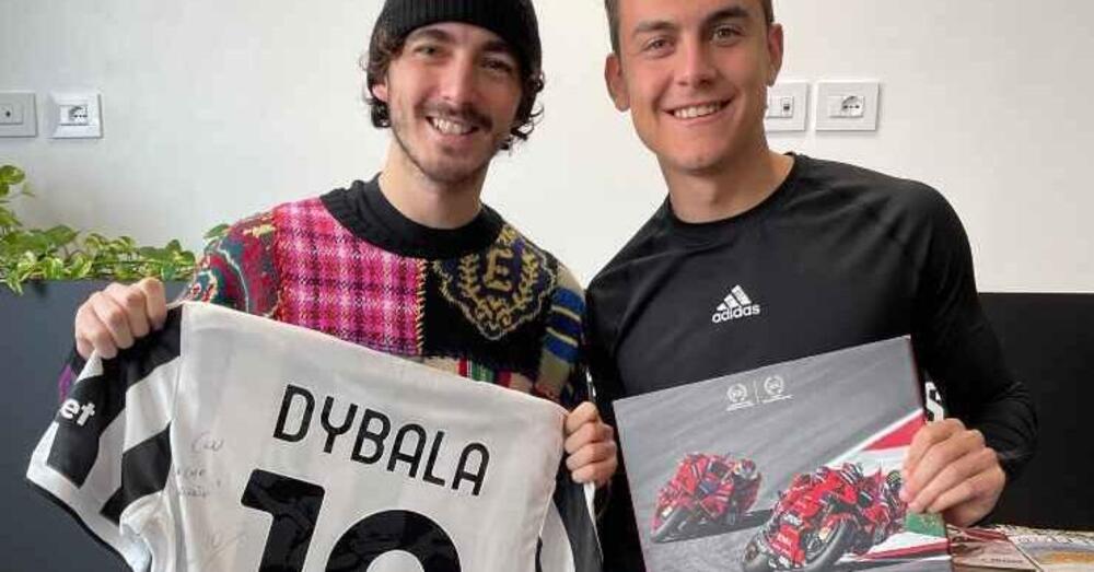 Et il fait passer son message : « pas comme toi qui va aussi dans d’autres clubs, et nous avons voulu dire bonjour ». Dybala fait référence en plaisantant au moment où le champion de MotoGP était à Paris pour donner le coup d’envoi du match Paris Saint Germain – Nice, et aussi au fait que le Français a été en contact avec des coureurs d’autres clubs, comme ceux de Barcelone, alors que Bagnaia est très fidèle à son équipe de la Juventus.
