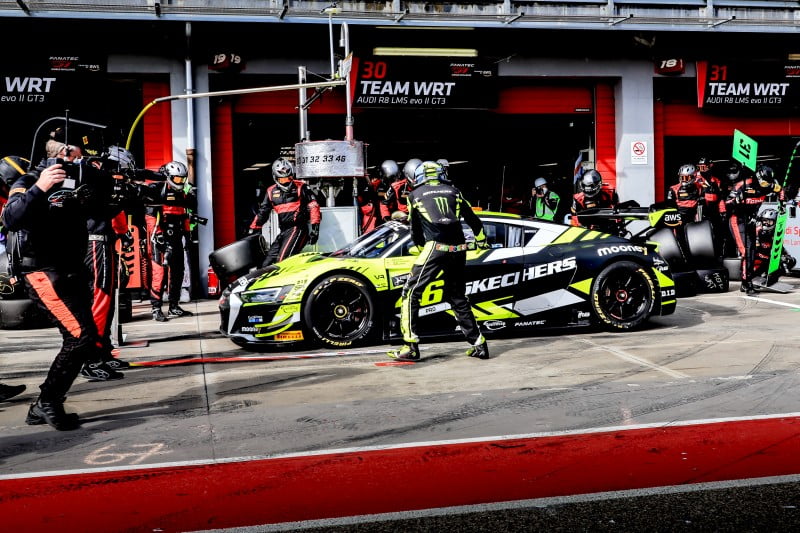 Panique générale dans l’équipe WRT car Valentino Rossi a dû repartir pour un tour, mais c’est finalement avec le sourire que le team belge a pris la chose.
