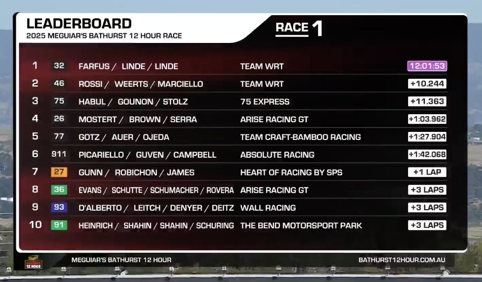 Le Team WRT avait bien débuté l’année 2025 en remportant les deux premières manches du championnat Michelin 24H Series à Dubaï et Abu Dhabi début janvier (tous deux aux Emirats Arabes Unis), mais les 12 Heures de Bathurst sur le circuit de Mount Panorama étaient une autre paire de manches pour l’équipe belge, puisqu’aucune BMW n’avait réussi à s’y imposer, malgré de nombreuses tentatives depuis que les voitures GT3 y sont engagées, le dernier triomphe bavarois remontant à 2010 avec une BMW 335i.