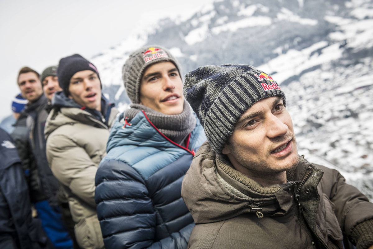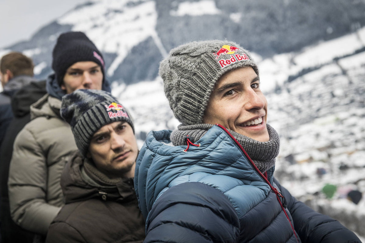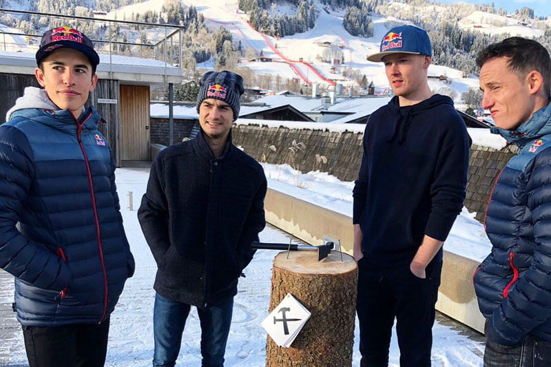 Obligations commerciales obligent, Marc Marquez, Dani Pedrosa, Pol Esparagaro et Bradley Smith sont allés rejoindre ce week-end Max Verstappen, Brendon Hartley et Sébastien Ogier à Kitzbühel pour assister à la manche autrichienne de la Coupe du monde FIS de ski alpin.