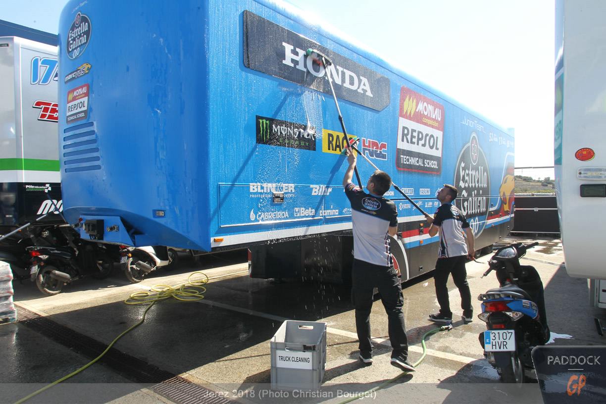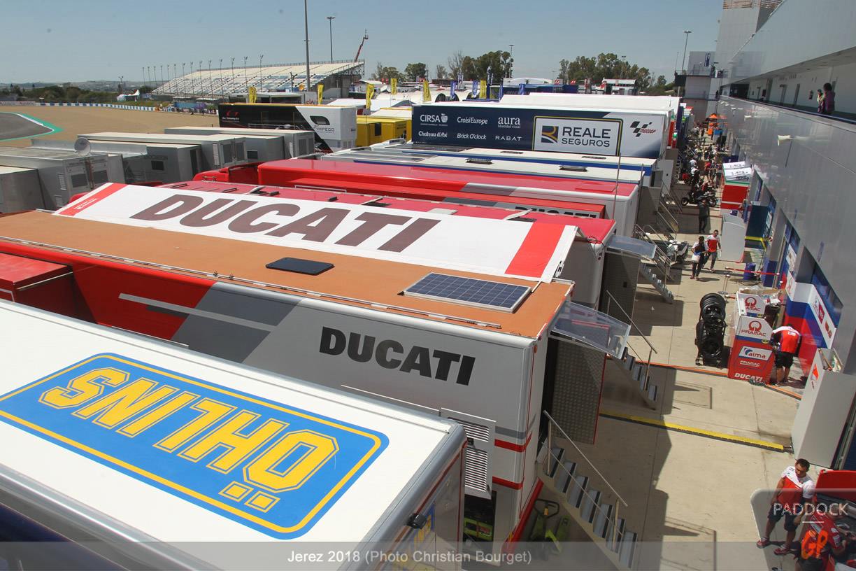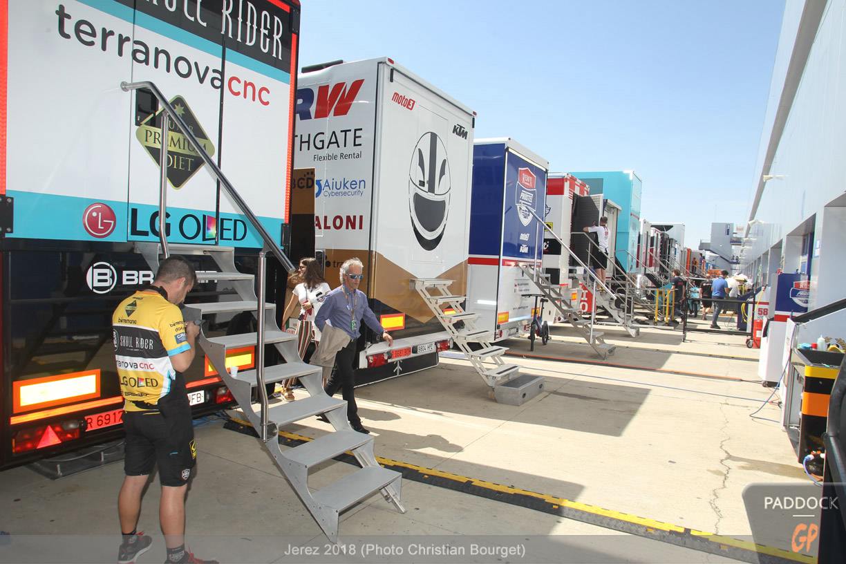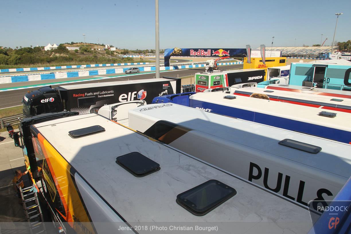 Certains d’entre vous pourront en bénéficier lors du prochain Grand Prix de France grâce à nos jeux-concours (attention : le prochain débute demain) mais, en attendant, voici un petit aperçu du paddock de Jerez capturé par un de nos photographes.