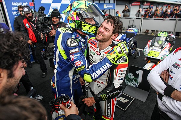 Crutchlow ne gagne pas que sur l’eau. Il n’est pas resté sec sous le soleil hivernal de Phillip Island en prenant la relève de Márquez aux commandes de la course après que le Champion du Monde ait renoué avec les affres de la chute. Rossi est second et Viñales complète le podium.