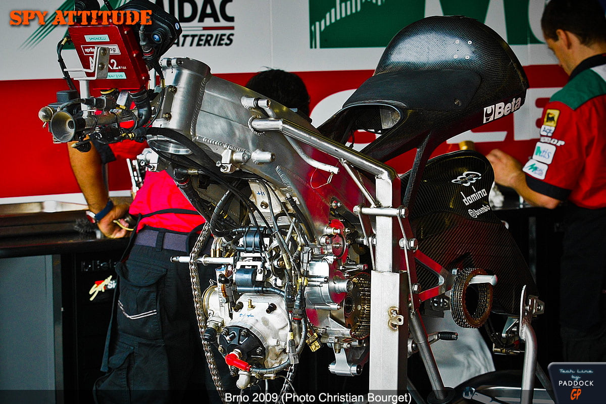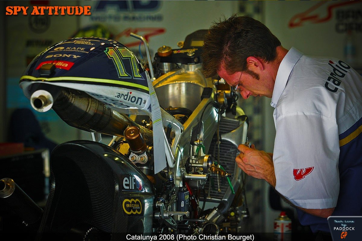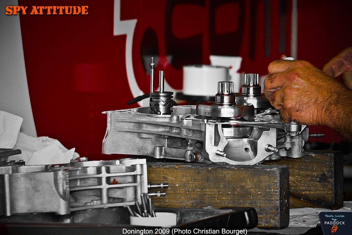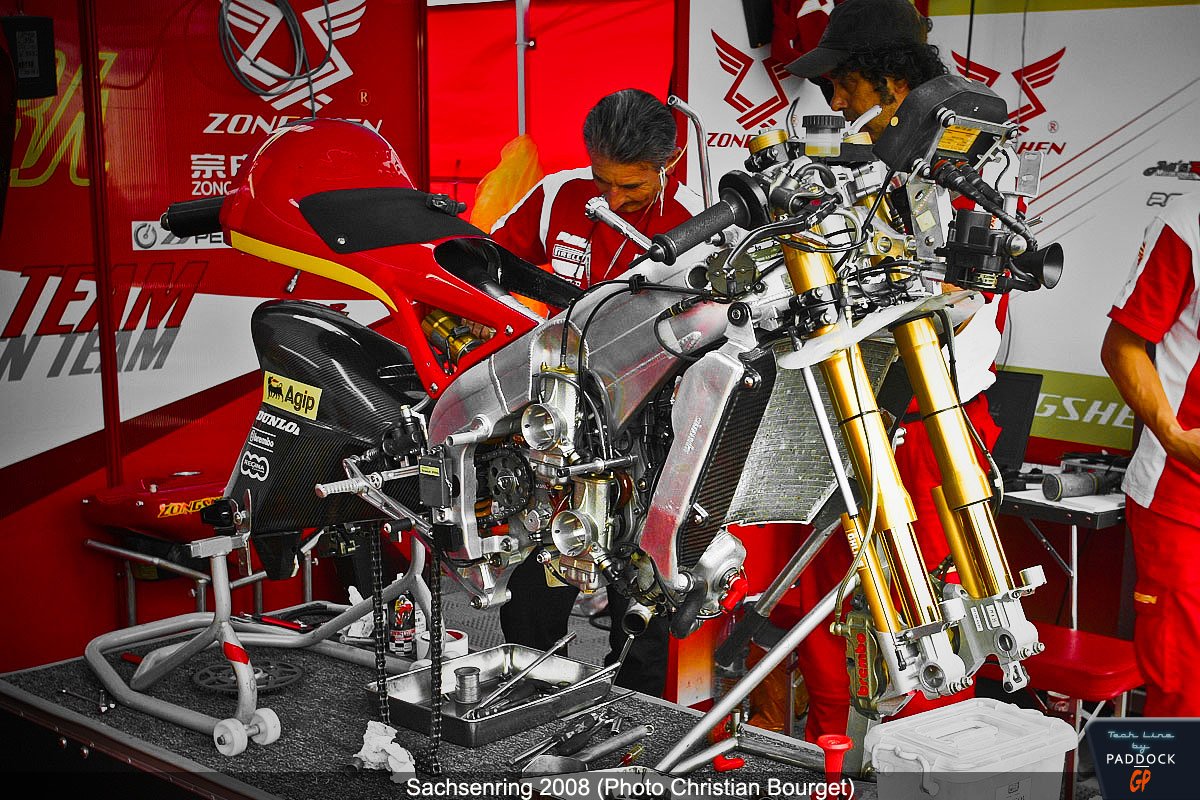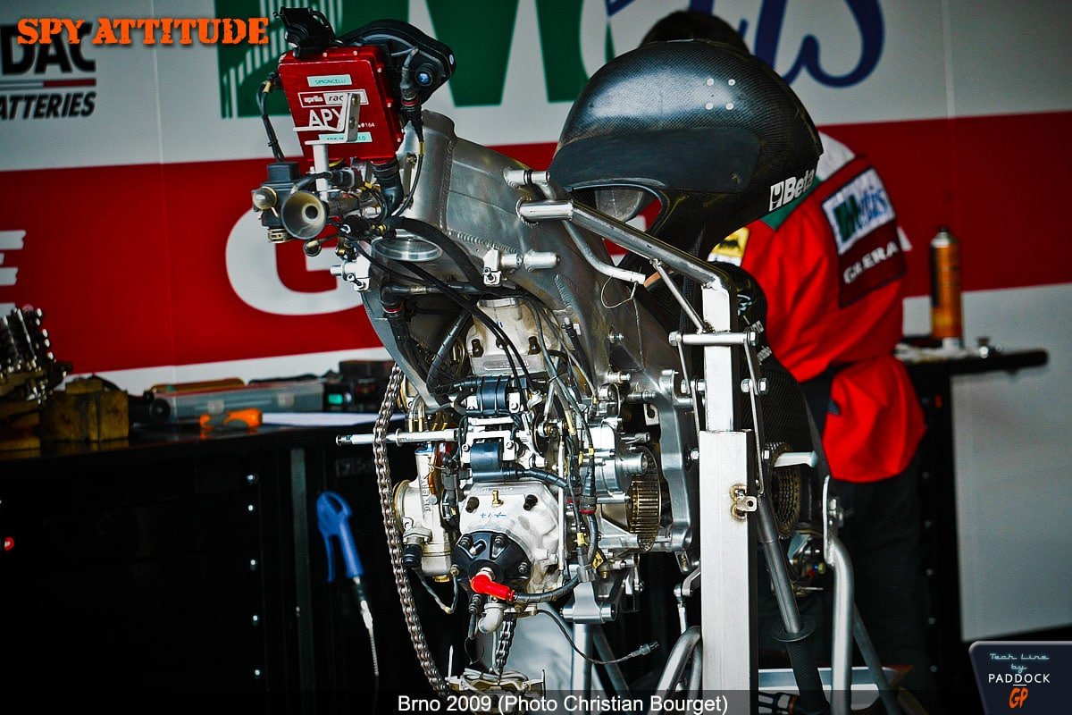 Sans même parler des roues en carbone utilisées avant leur interdiction, on avait là affaire à de véritables machines de compétition et il n’était pas rare d’entendre les belles italiennes fruits du travail de Jan Thiel et Frits Overmars crépiter dans le paddock à une heure du matin, une fois les pistons changés, les boîtes « faites » et les différentes pièces polies…