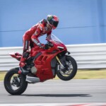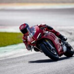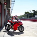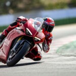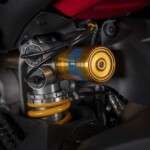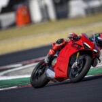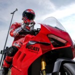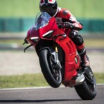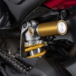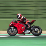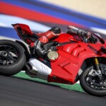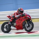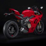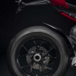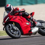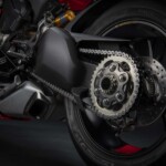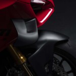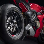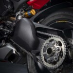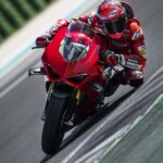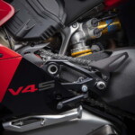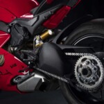 Avec son V4 Desmosedici Twin Pulse à 90° de 1103 cc qui développe 215 ch à 13 000 tr/min, un vilebrequin contre-rotatif, une boite de vitesse qui reprend l’étagement de celle de la V4 R de Superbike, les contrôles de traction, de glisse, du frein moteur et du wheeling, une ligne titane Akrapovic, un shifter bidirectionnel, des freins Brembo Stylema, des ailerons apportant 37 kg d’appui à 300 km/h et quelques autres friandises que l’on peut compléter par la version S dotée de jantes en aluminium forgées, d’une batterie Lithium et de suspensions semi-actives Öhlins Smart EC 2.0, la dernière production de Borgo Panigale n’est pas bien loin d’une Superbike adaptée à la route !