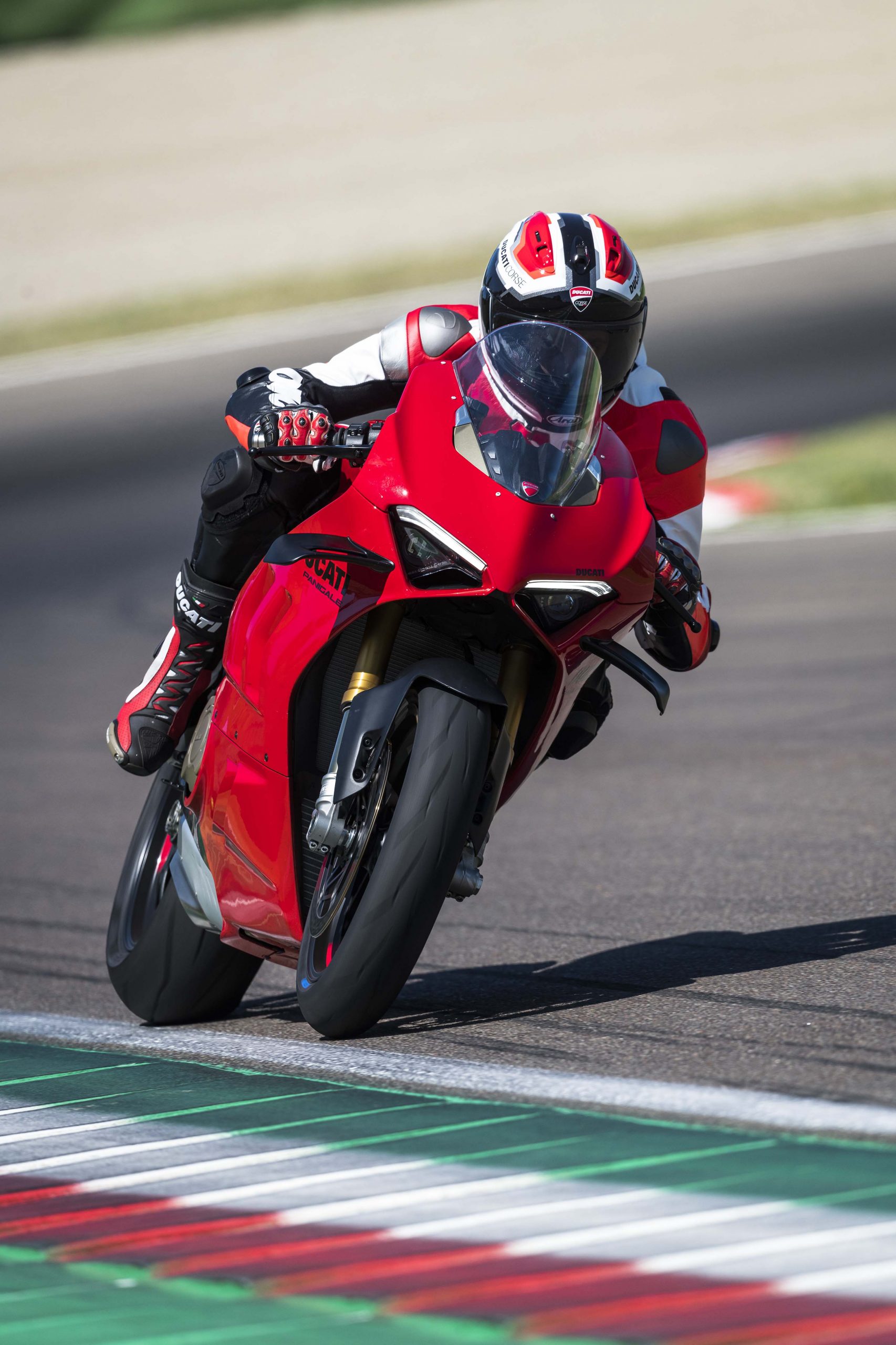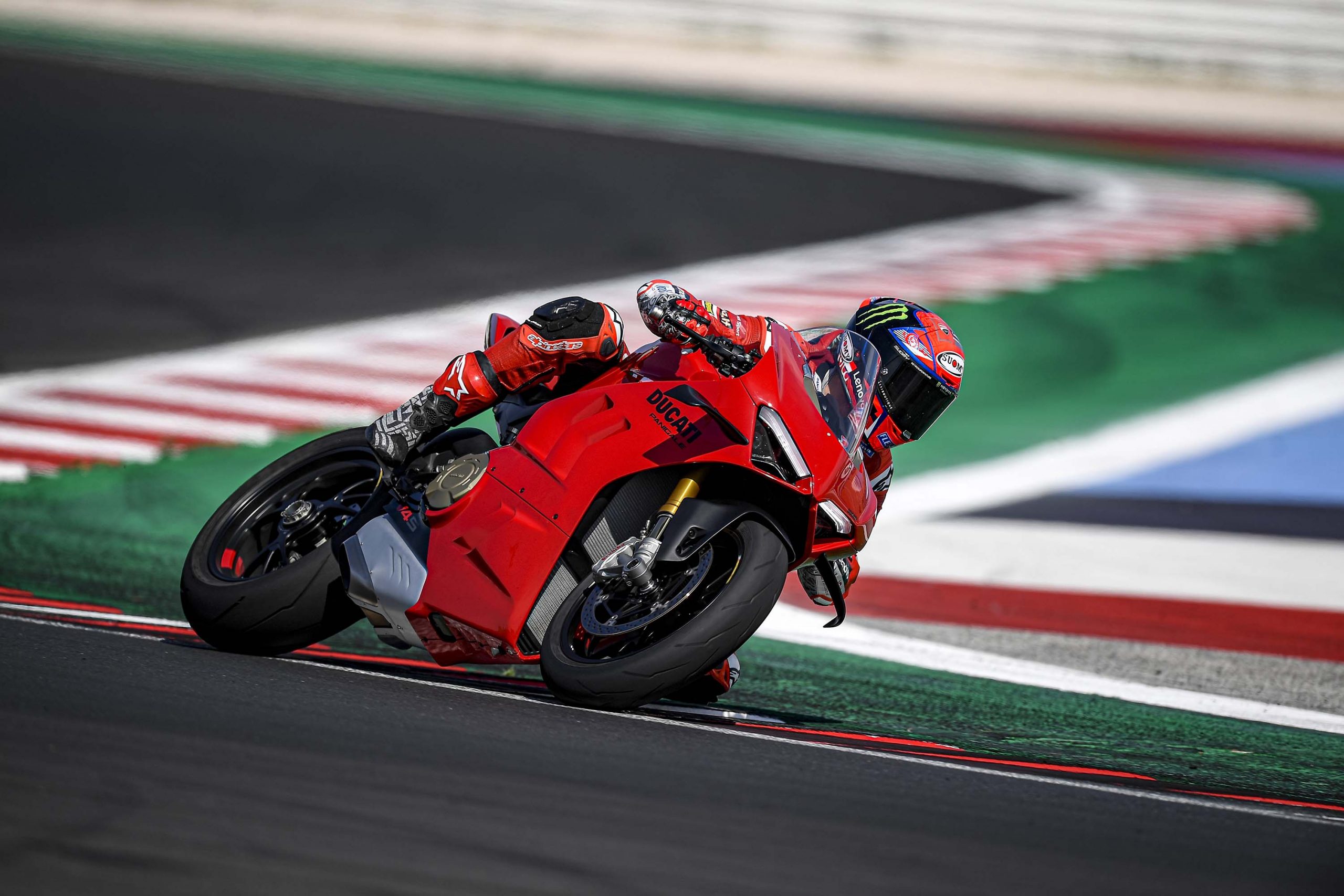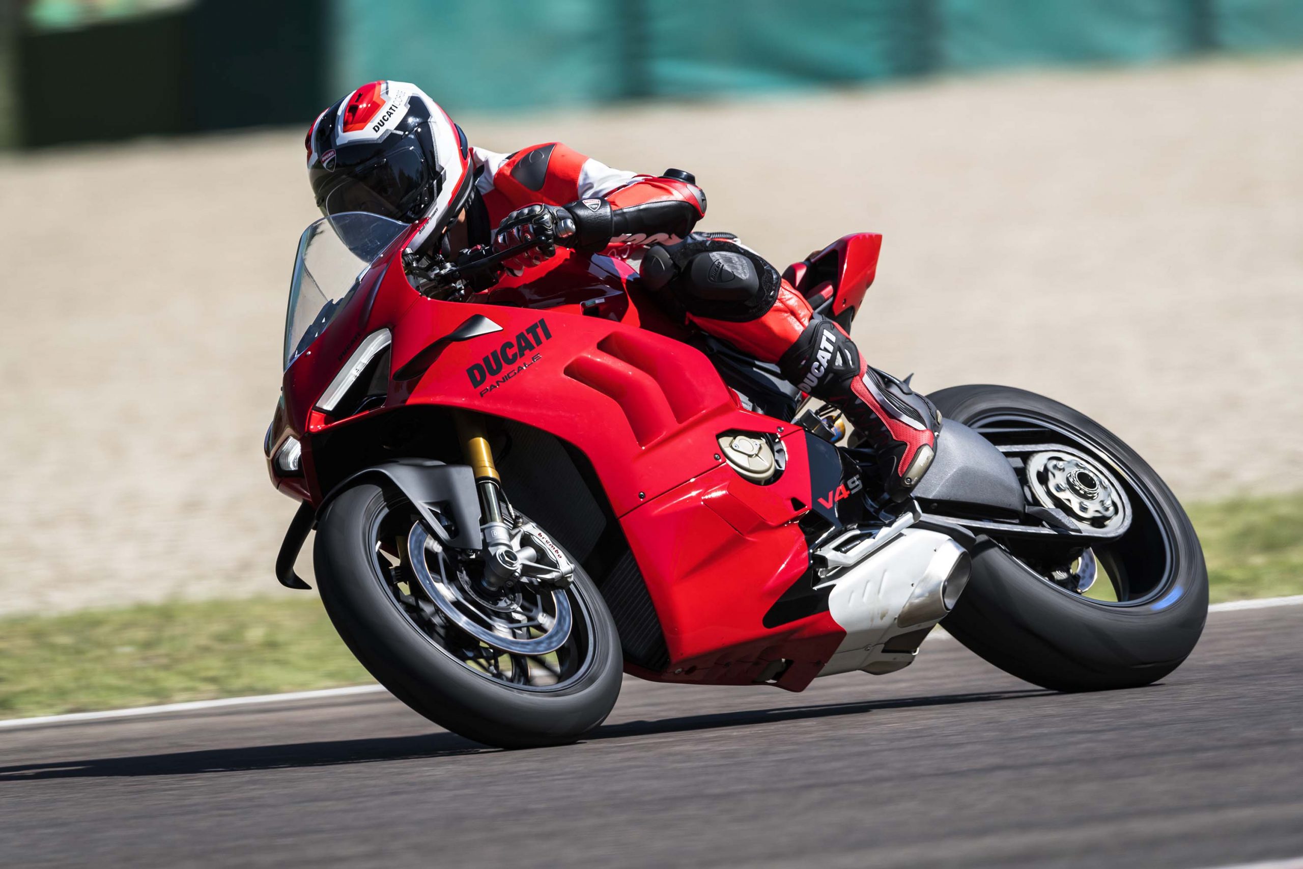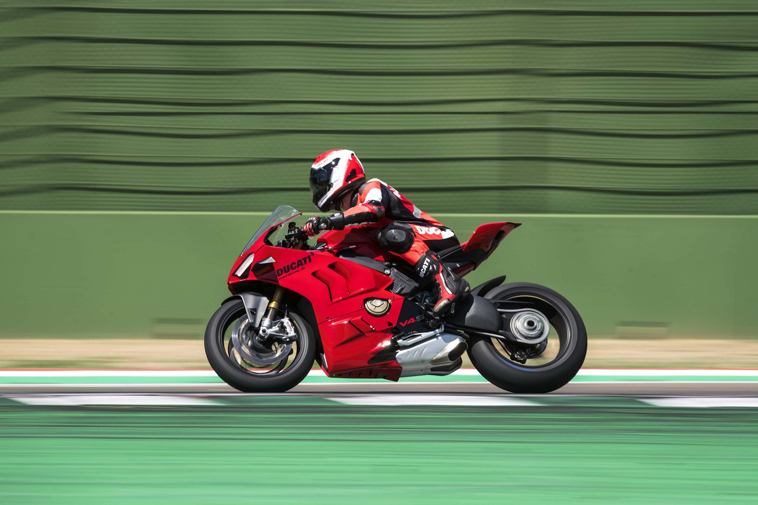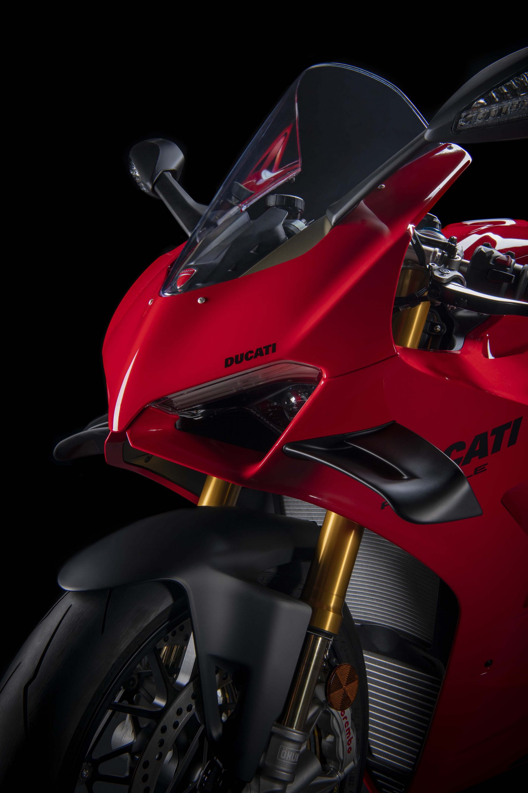 Avec son V4 Desmosedici Twin Pulse à 90° de 1103 cc qui développe 215 ch à 13 000 tr/min, un vilebrequin contre-rotatif, une boite de vitesse qui reprend l’étagement de celle de la V4 R de Superbike, les contrôles de traction, de glisse, du frein moteur et du wheeling, une ligne titane Akrapovic, un shifter bidirectionnel, des freins Brembo Stylema, des ailerons apportant 37 kg d’appui à 300 km/h et quelques autres friandises que l’on peut compléter par la version S dotée de jantes en aluminium forgées, d’une batterie Lithium et de suspensions semi-actives Öhlins Smart EC 2.0, la dernière production de Borgo Panigale n’est pas bien loin d’une Superbike adaptée à la route !