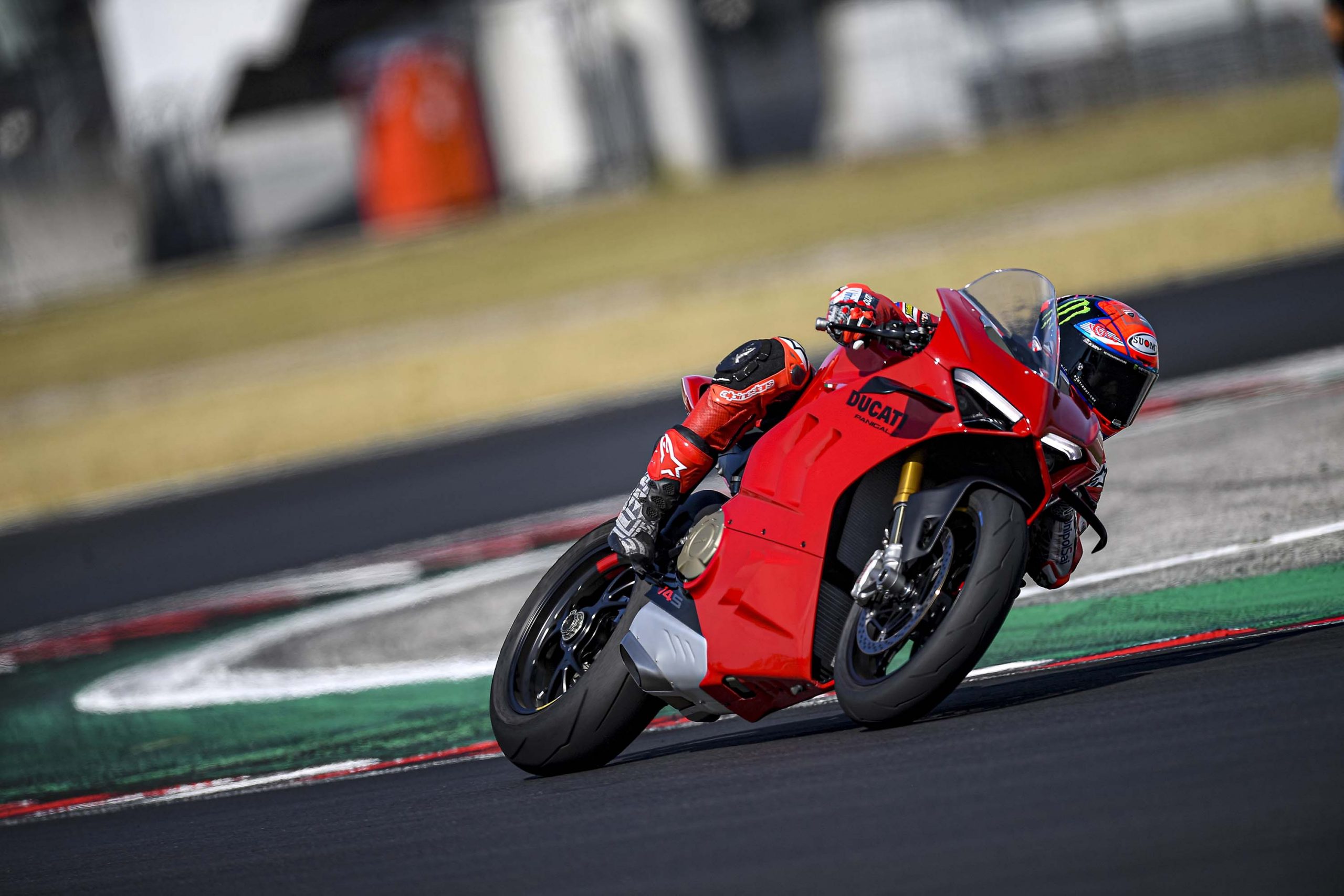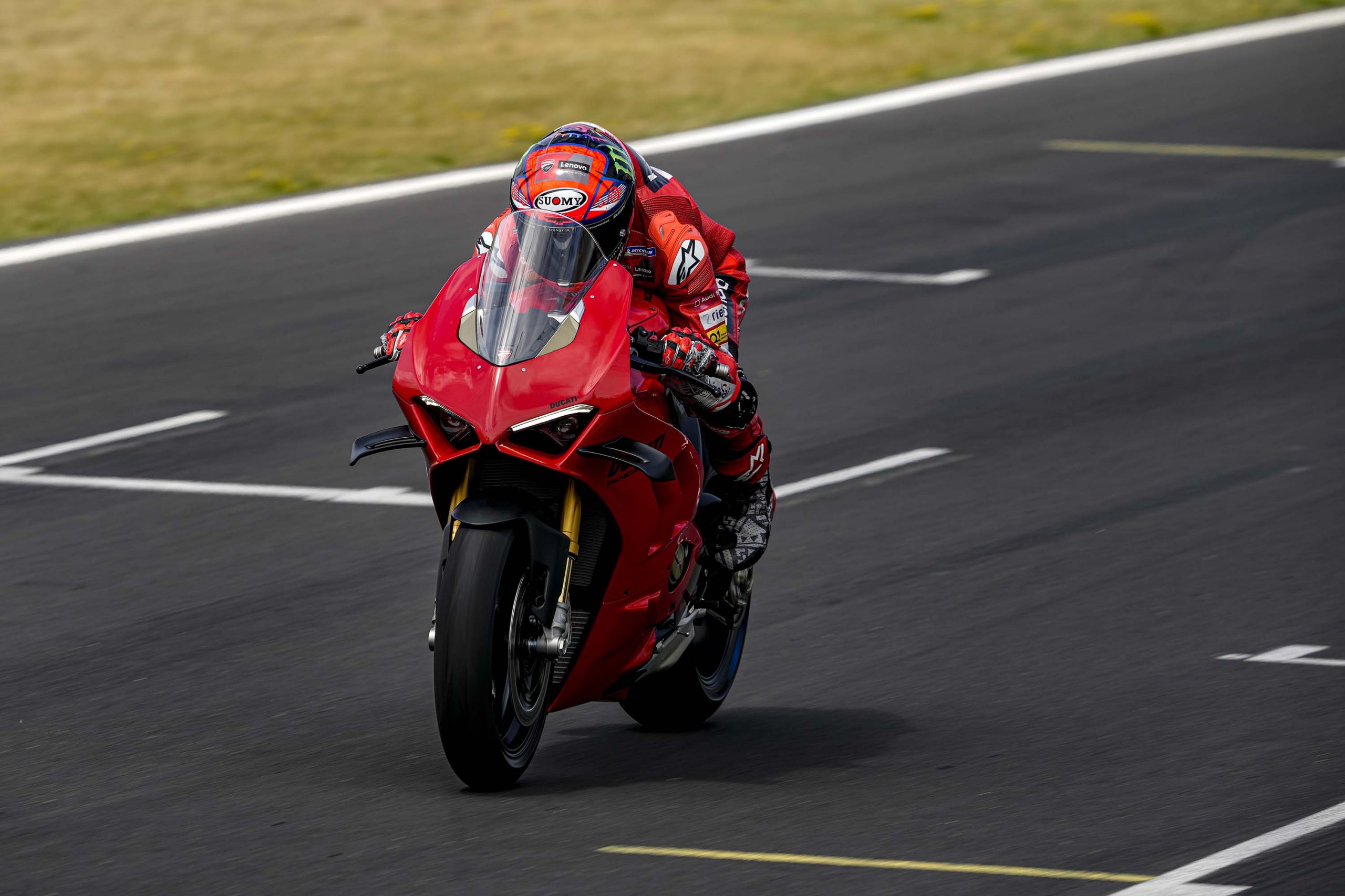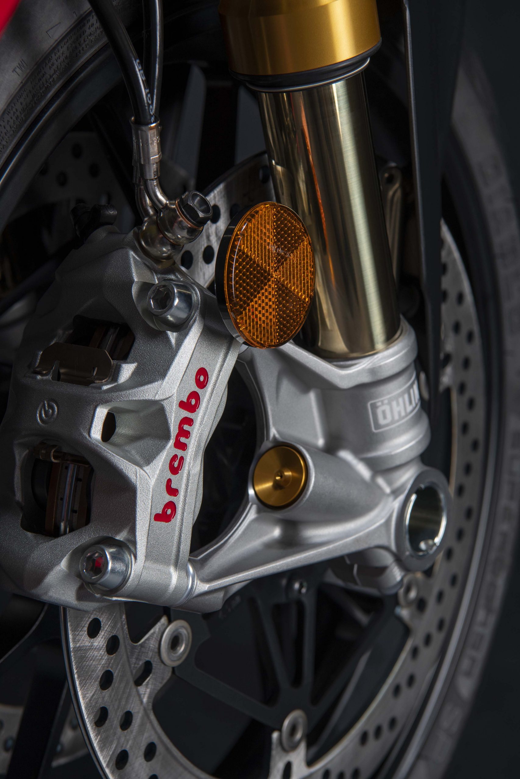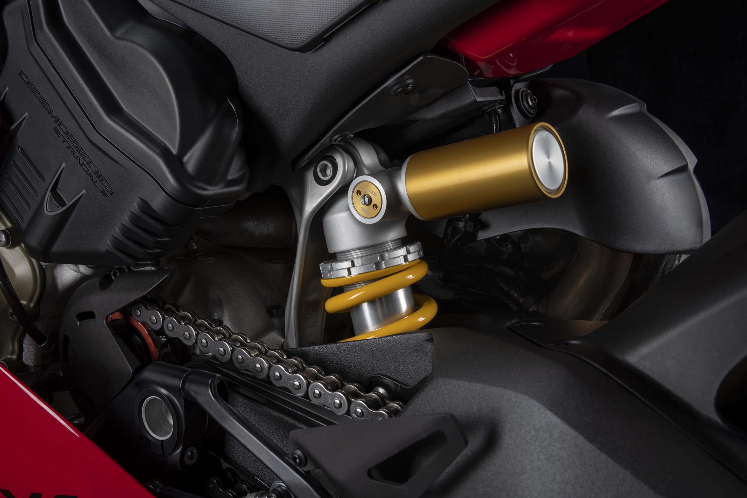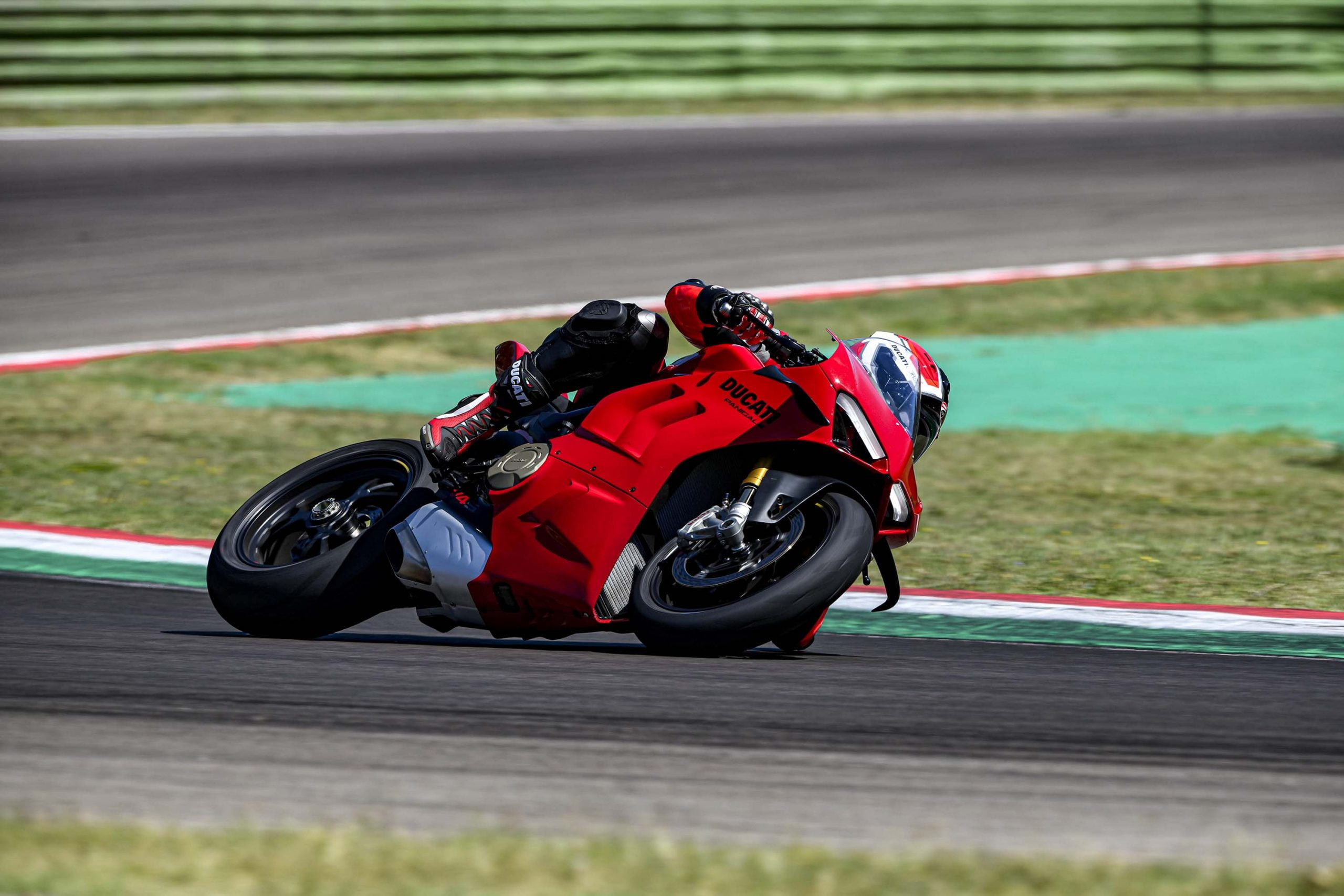 Avec son V4 Desmosedici Twin Pulse à 90° de 1103 cc qui développe 215 ch à 13 000 tr/min, un vilebrequin contre-rotatif, une boite de vitesse qui reprend l’étagement de celle de la V4 R de Superbike, les contrôles de traction, de glisse, du frein moteur et du wheeling, une ligne titane Akrapovic, un shifter bidirectionnel, des freins Brembo Stylema, des ailerons apportant 37 kg d’appui à 300 km/h et quelques autres friandises que l’on peut compléter par la version S dotée de jantes en aluminium forgées, d’une batterie Lithium et de suspensions semi-actives Öhlins Smart EC 2.0, la dernière production de Borgo Panigale n’est pas bien loin d’une Superbike adaptée à la route !