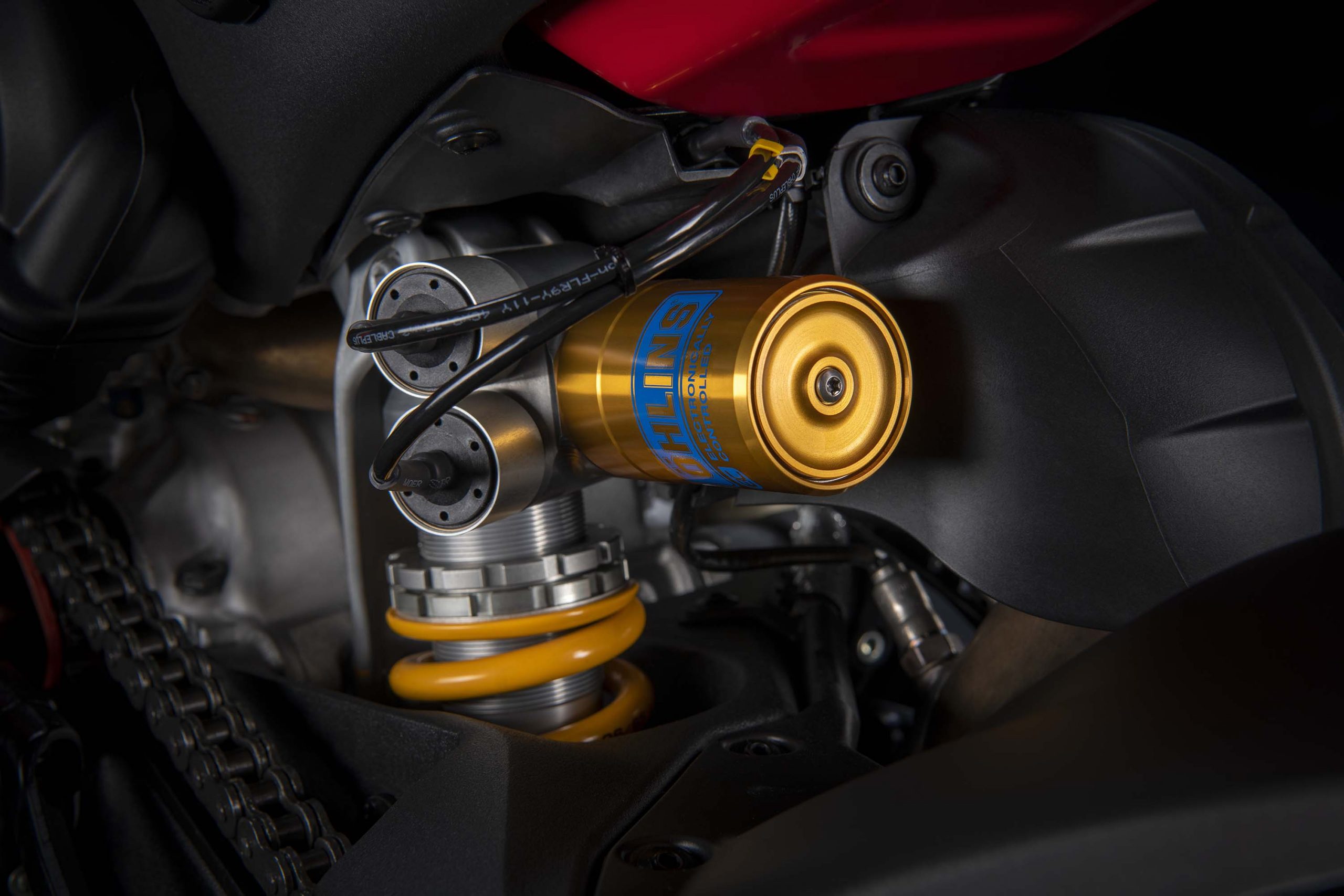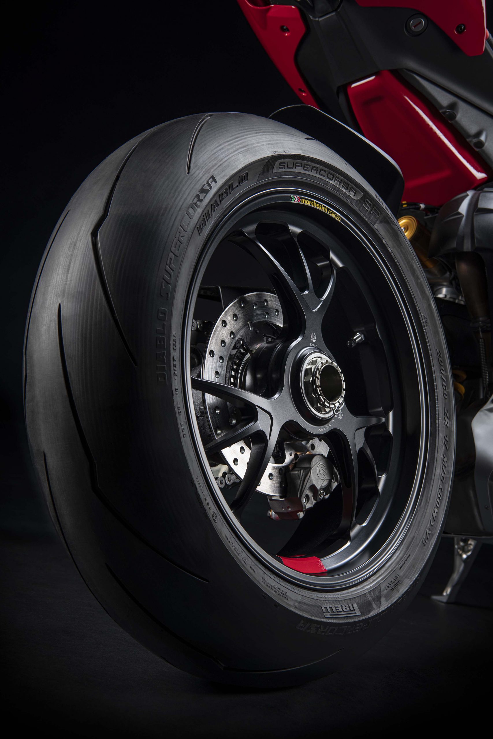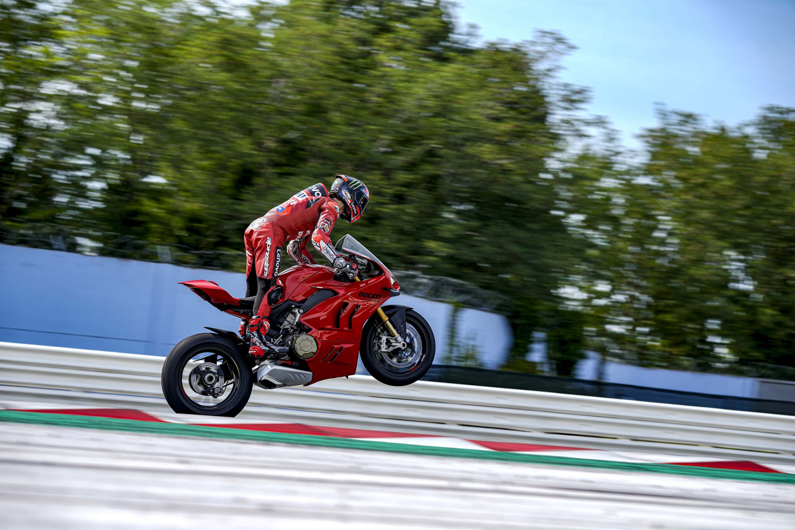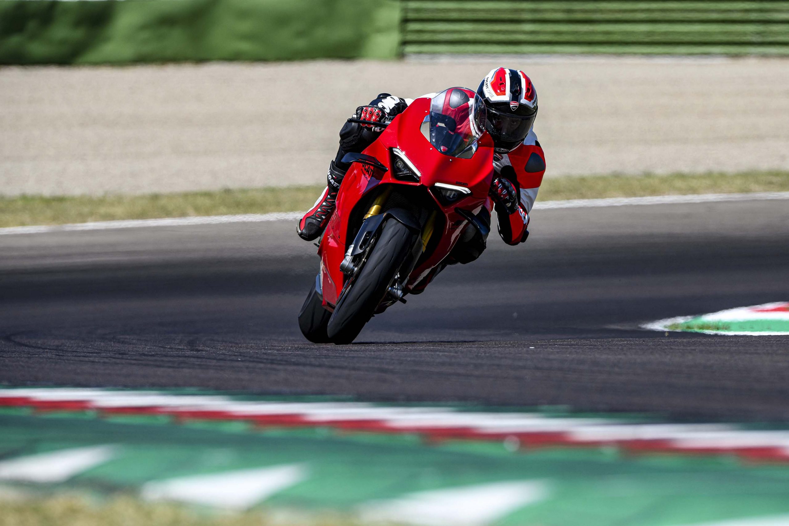Avec son V4 Desmosedici Twin Pulse à 90° de 1103 cc qui développe 215 ch à 13 000 tr/min, un vilebrequin contre-rotatif, une boite de vitesse qui reprend l’étagement de celle de la V4 R de Superbike, les contrôles de traction, de glisse, du frein moteur et du wheeling, une ligne titane Akrapovic, un shifter bidirectionnel, des freins Brembo Stylema, des ailerons apportant 37 kg d’appui à 300 km/h et quelques autres friandises que l’on peut compléter par la version S dotée de jantes en aluminium forgées, d’une batterie Lithium et de suspensions semi-actives Öhlins Smart EC 2.0, la dernière production de Borgo Panigale n’est pas bien loin d’une Superbike adaptée à la route !