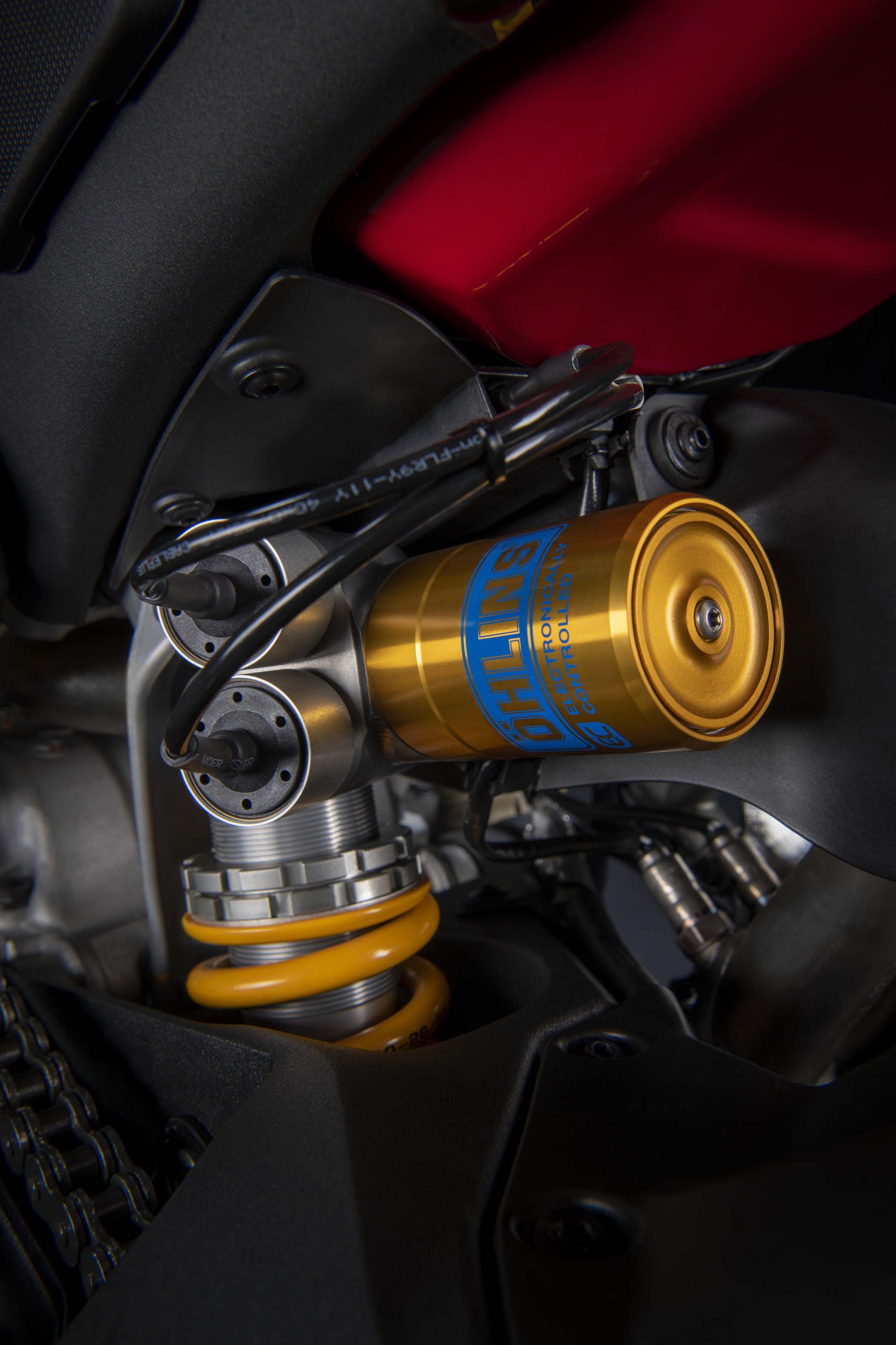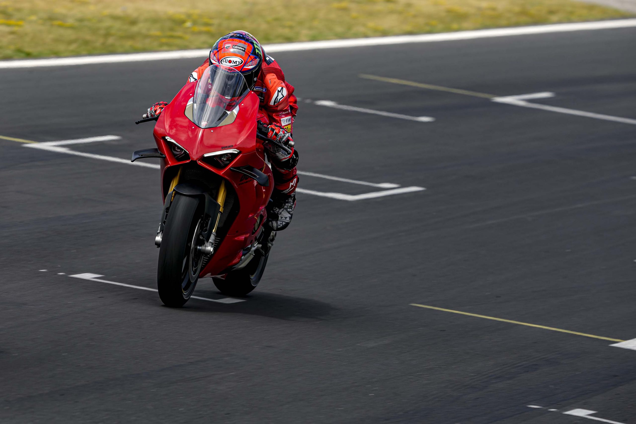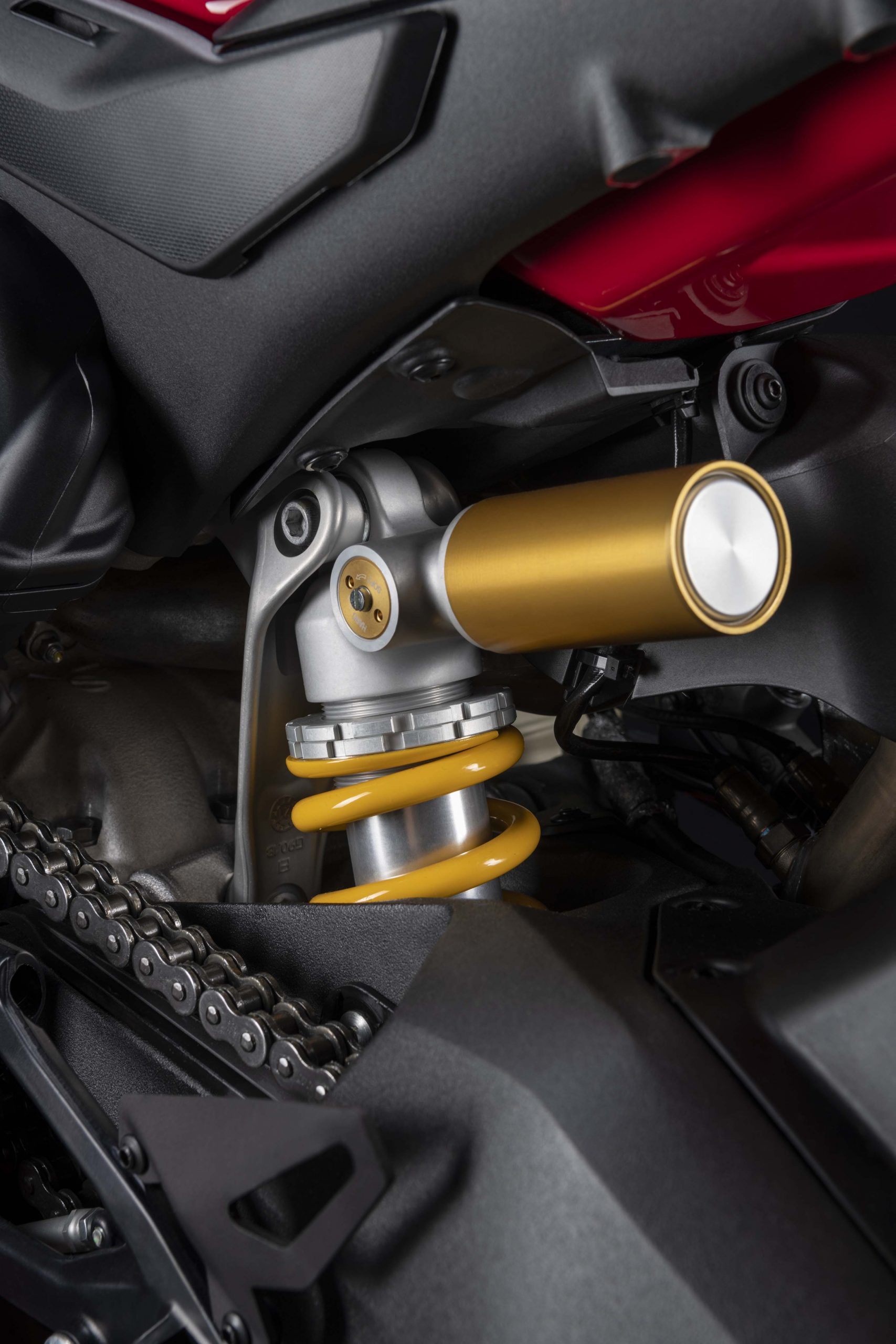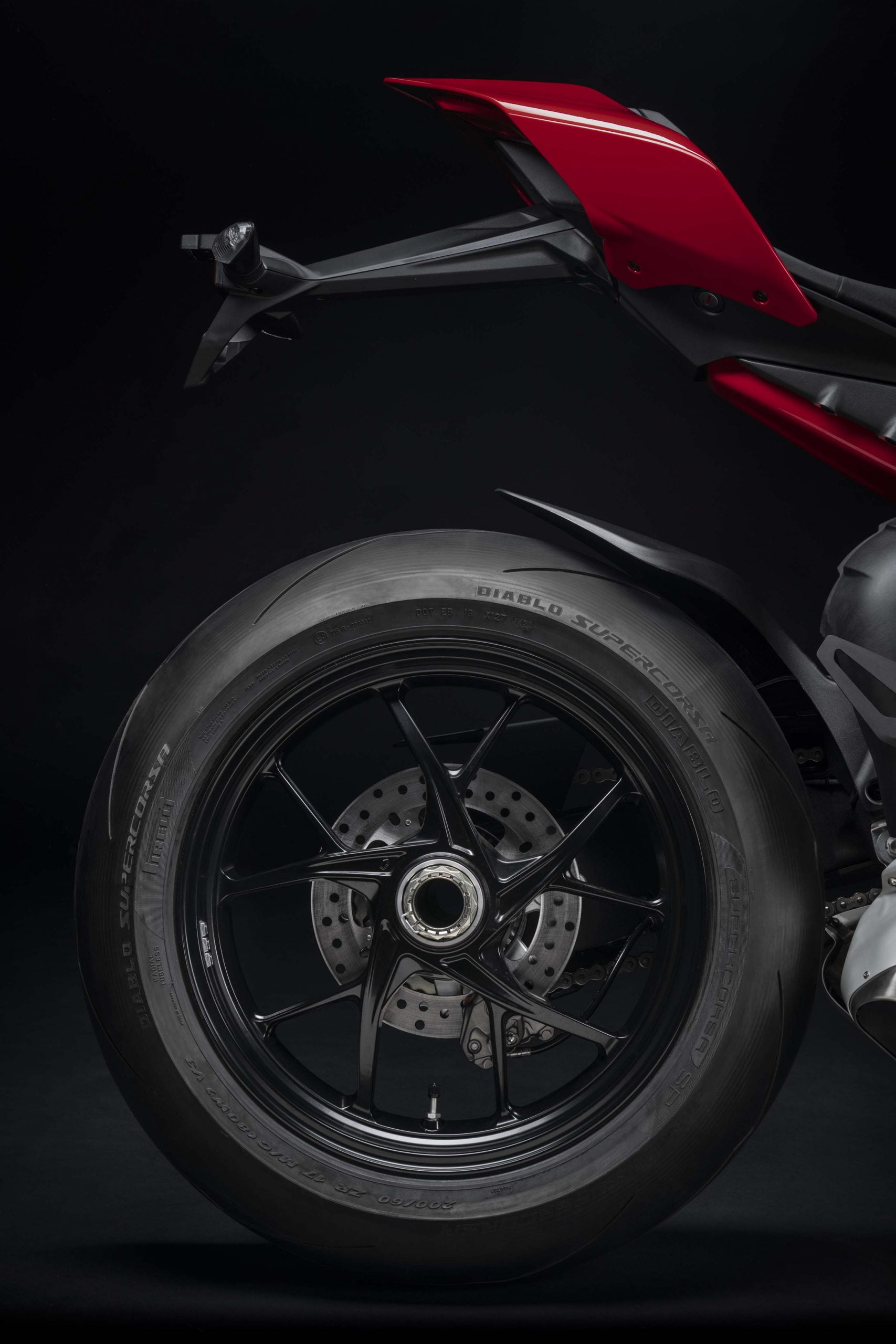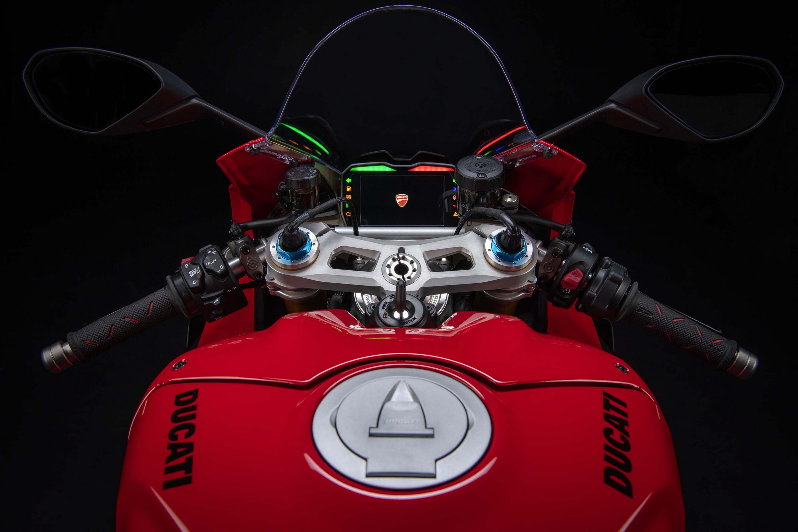 Avec son V4 Desmosedici Twin Pulse à 90° de 1103 cc qui développe 215 ch à 13 000 tr/min, un vilebrequin contre-rotatif, une boite de vitesse qui reprend l’étagement de celle de la V4 R de Superbike, les contrôles de traction, de glisse, du frein moteur et du wheeling, une ligne titane Akrapovic, un shifter bidirectionnel, des freins Brembo Stylema, des ailerons apportant 37 kg d’appui à 300 km/h et quelques autres friandises que l’on peut compléter par la version S dotée de jantes en aluminium forgées, d’une batterie Lithium et de suspensions semi-actives Öhlins Smart EC 2.0, la dernière production de Borgo Panigale n’est pas bien loin d’une Superbike adaptée à la route !