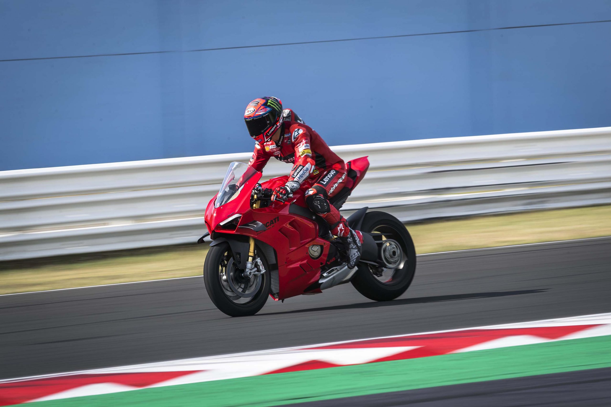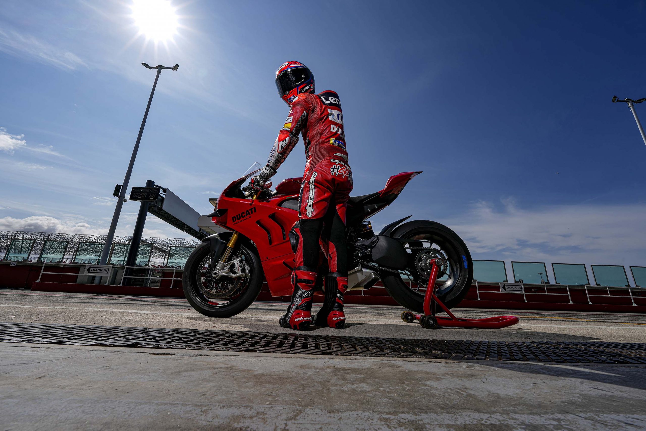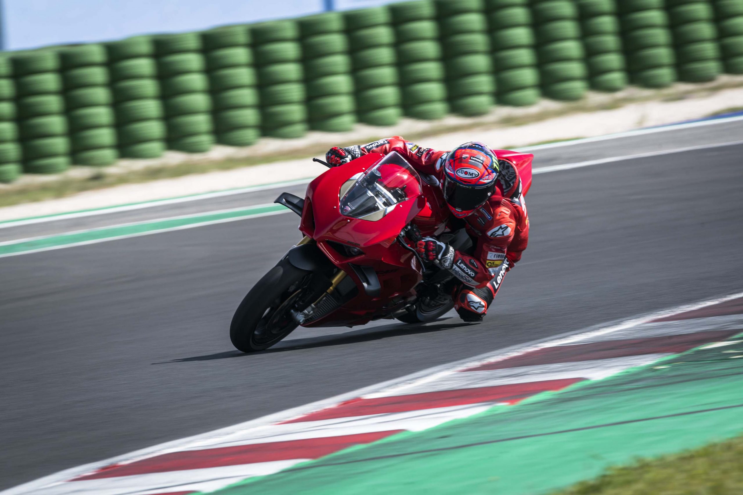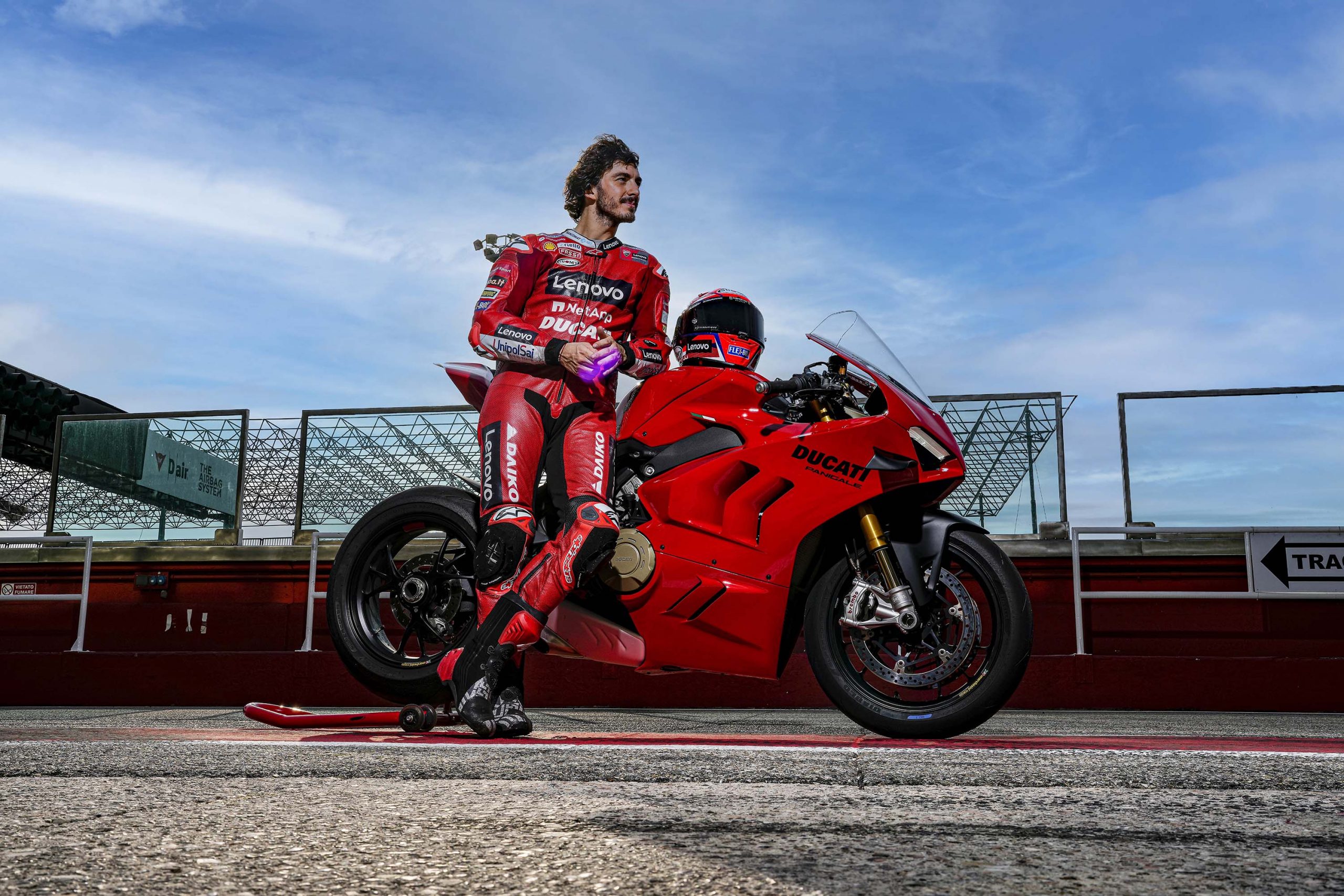 Dans le cas où une journée sur piste avec une moto de série proche des performances d’une Superbike n’entre pas dans votre budget, ces photos prises lors de la présentation à la presse avec Francesco Bagnaia vous permettront de profiter de la superbe Ducati Panigale V4 2022.