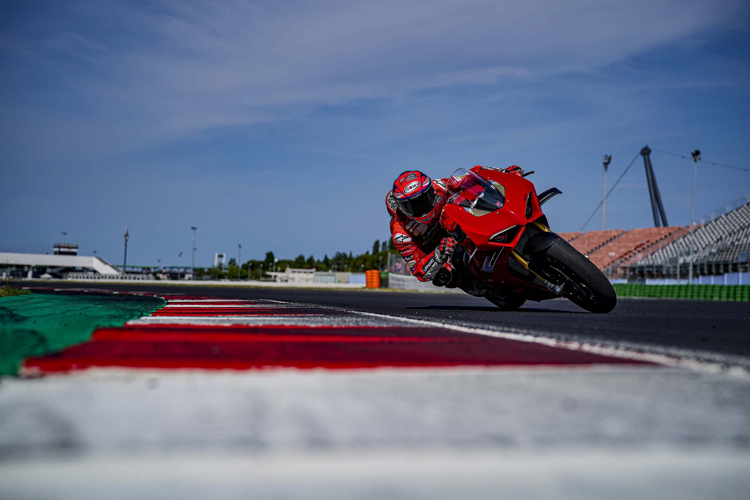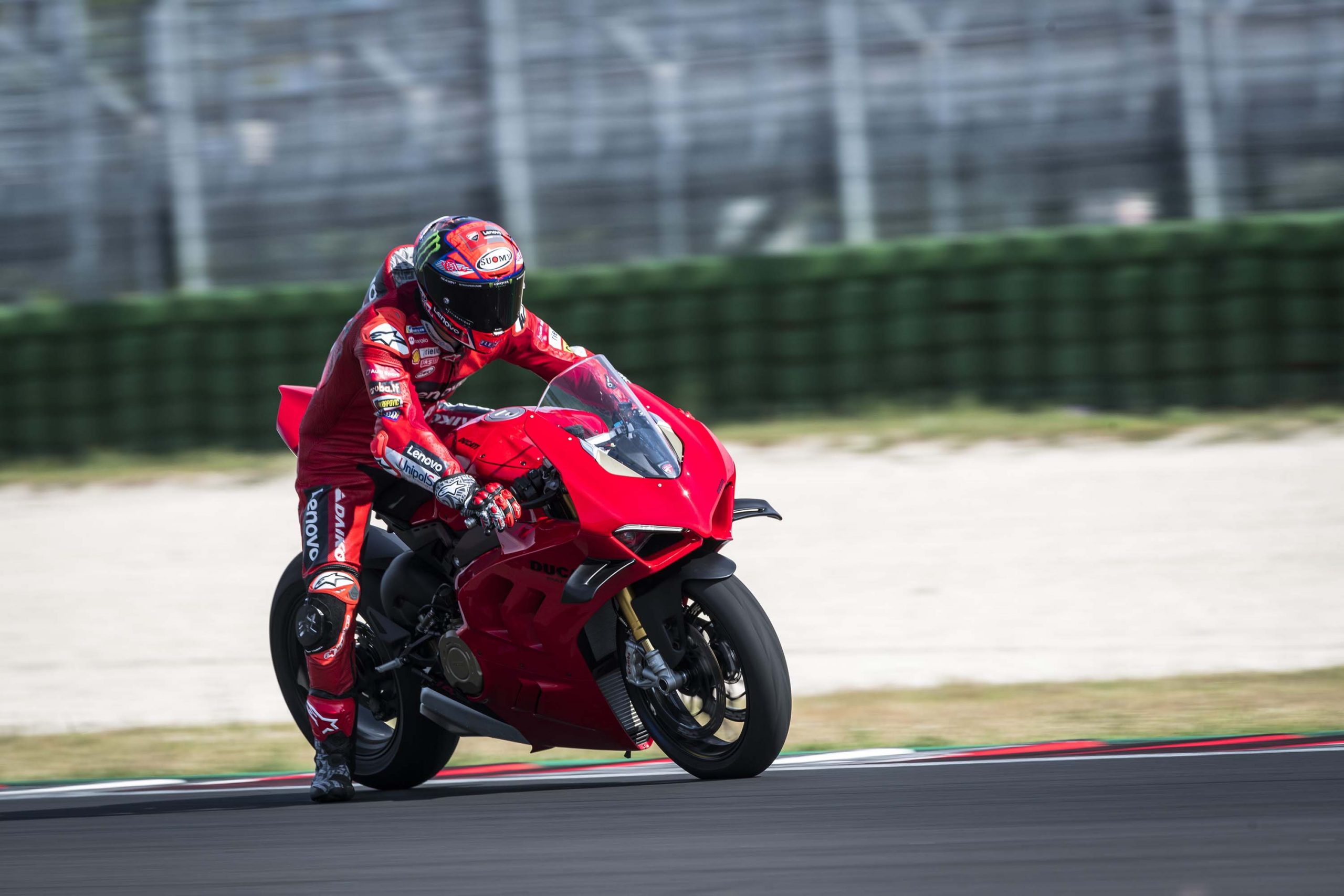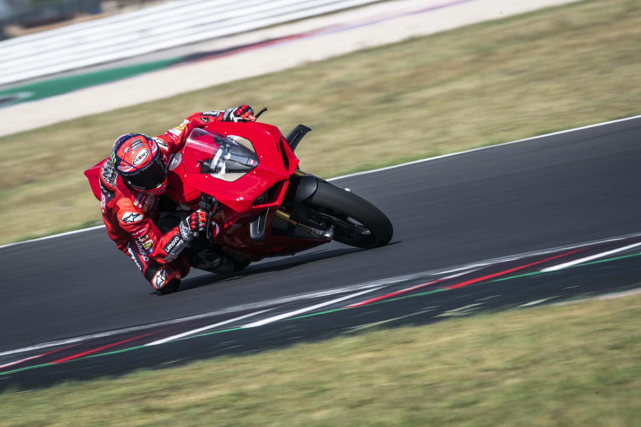 Dans le cas où une journée sur piste avec une moto de série proche des performances d’une Superbike n’entre pas dans votre budget, ces photos prises lors de la présentation à la presse avec Francesco Bagnaia vous permettront de profiter de la superbe Ducati Panigale V4 2022.