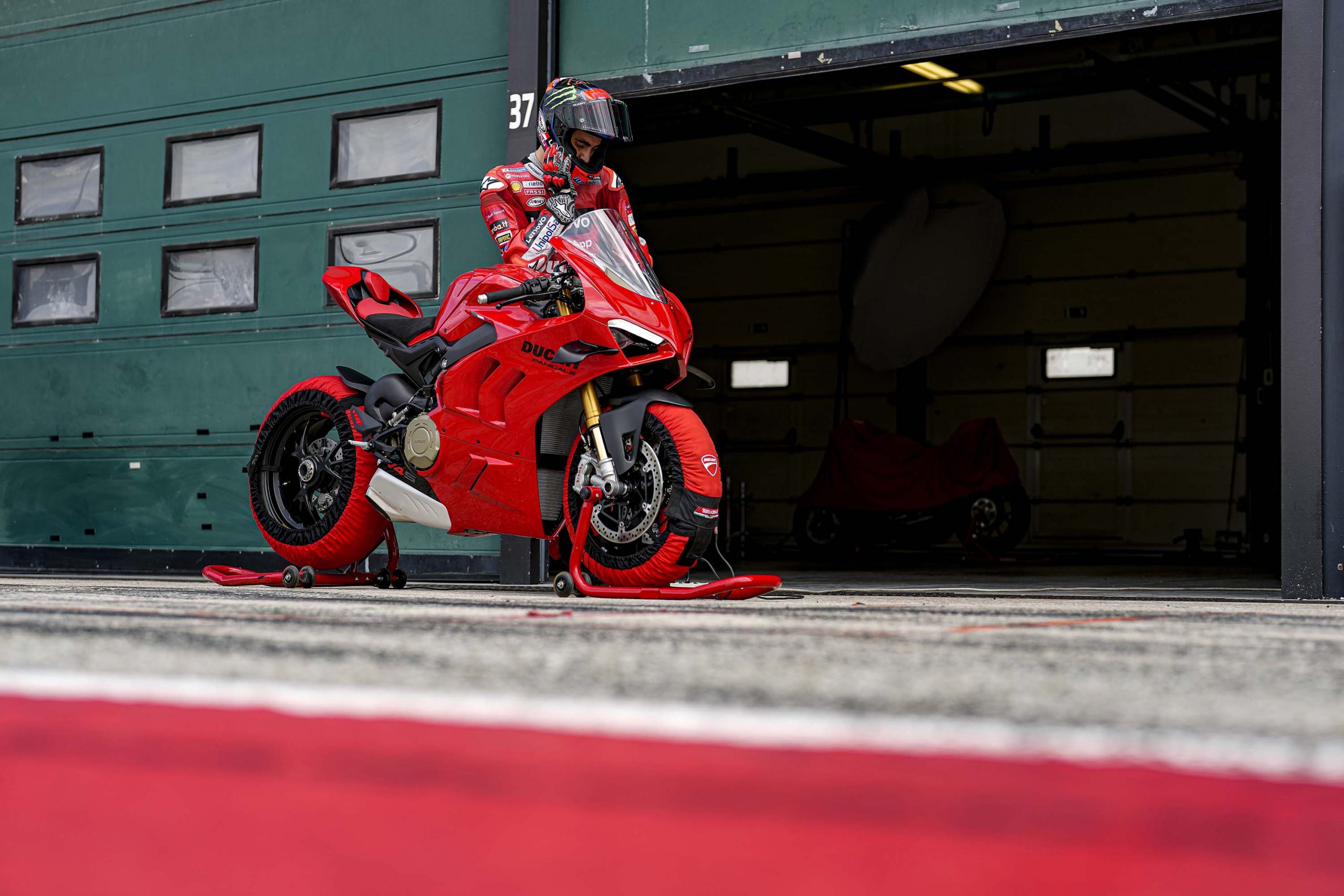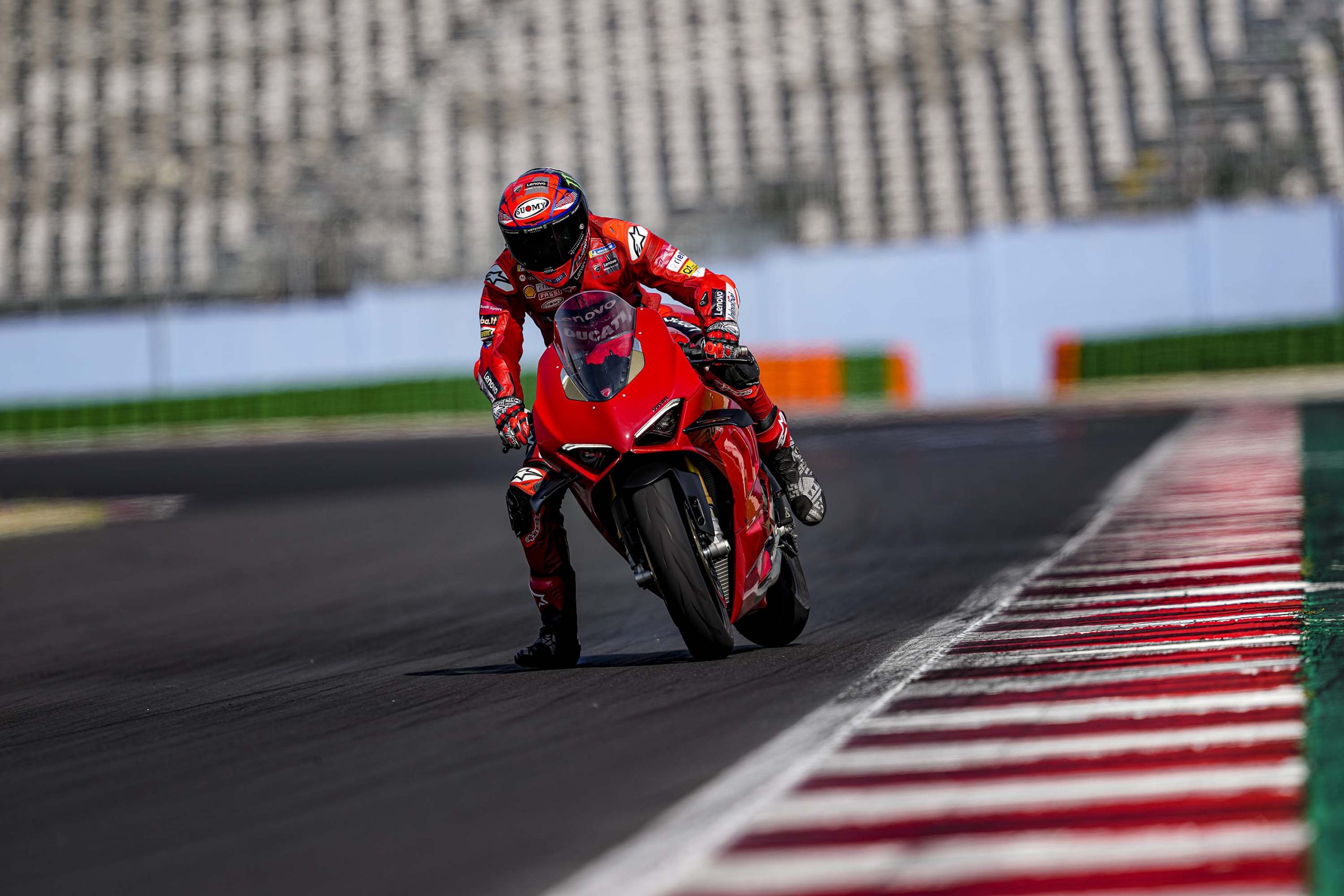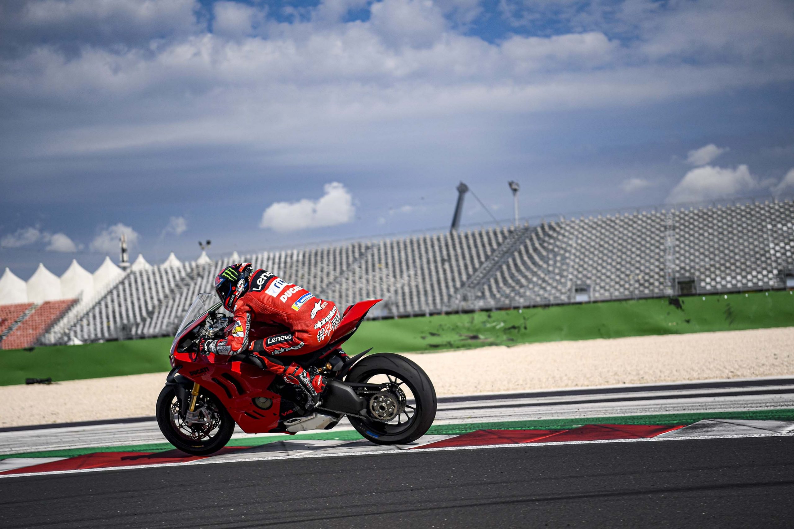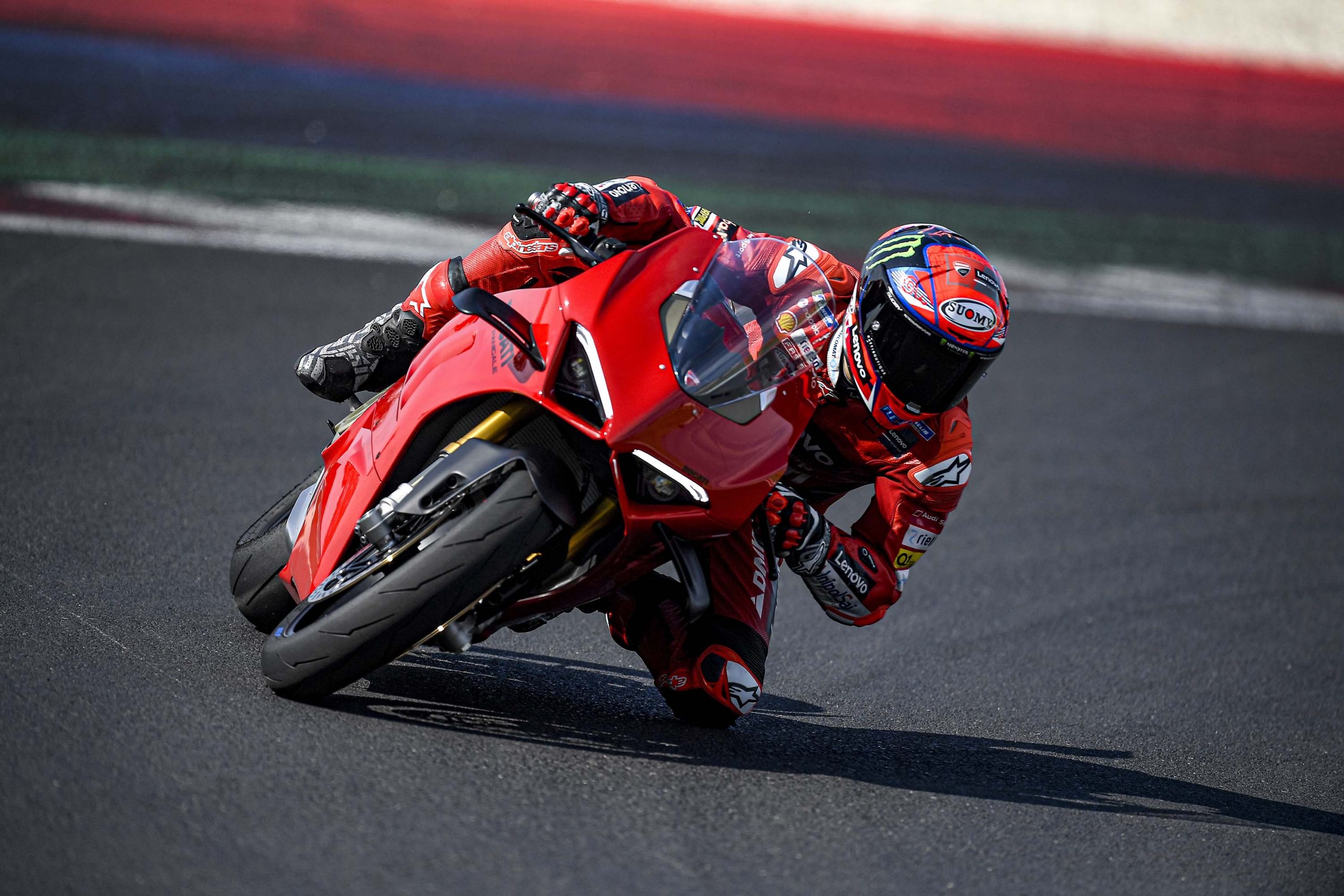 Dans le cas où une journée sur piste avec une moto de série proche des performances d’une Superbike n’entre pas dans votre budget, ces photos prises lors de la présentation à la presse avec Francesco Bagnaia vous permettront de profiter de la superbe Ducati Panigale V4 2022.