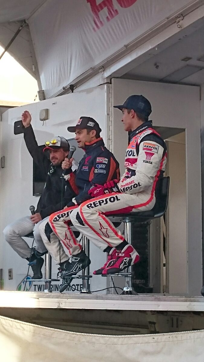 On a ainsi pu voir Fernando Alonso rouler sur une RC213V en compagnie de Marc Marquez, mais aussi Dani Pedrosa retrouver le guidon la 125cc de ses débuts.