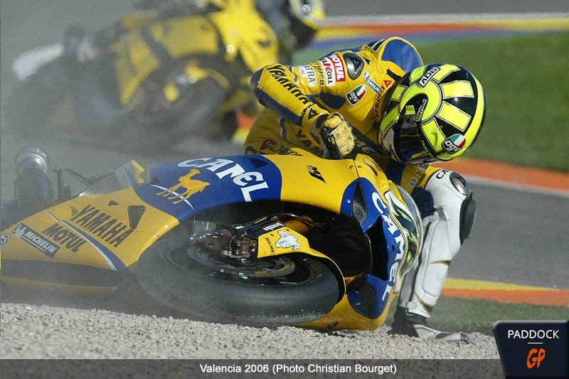 Combien de fois le champion italien a-t-il repensé à cette maudite chute  survenue lors de la finale au Grand Prix à Valencia en 2006 ? Lui seul le sait, mais la platitude du moment nous permet de revenir en images sur cette fin de saison à incroyablement grand suspens…