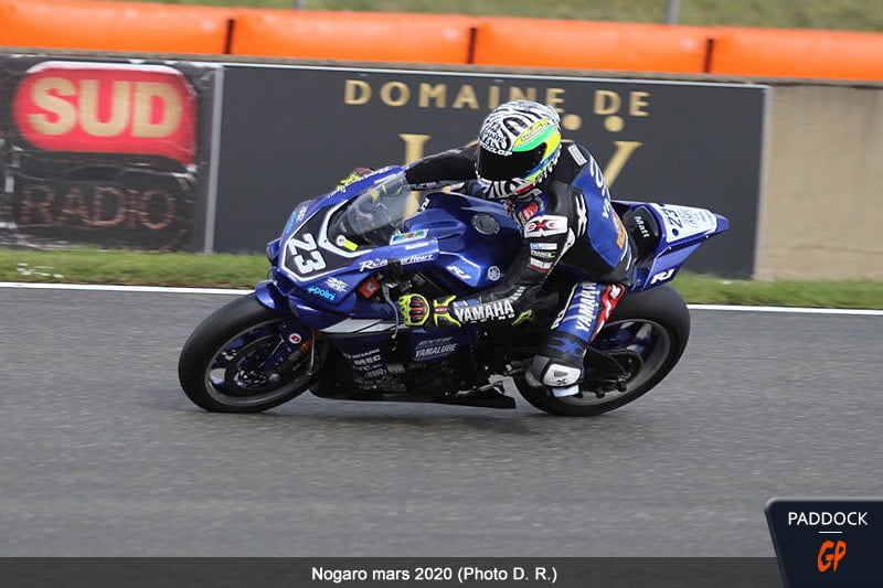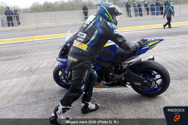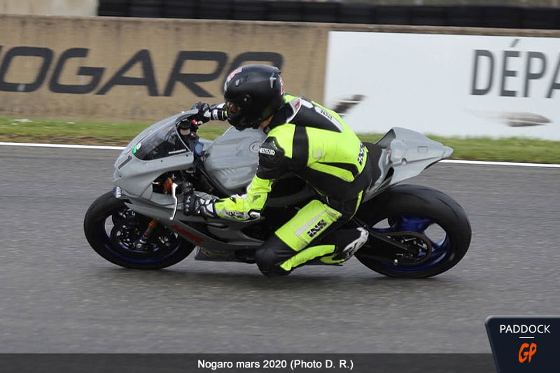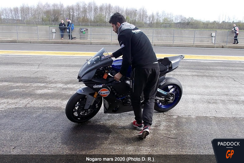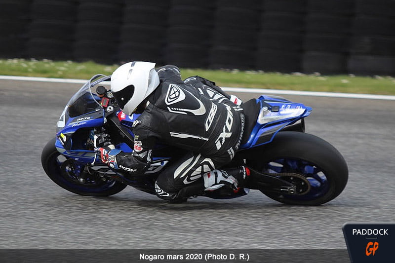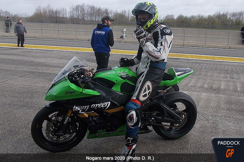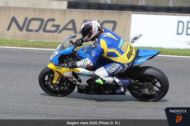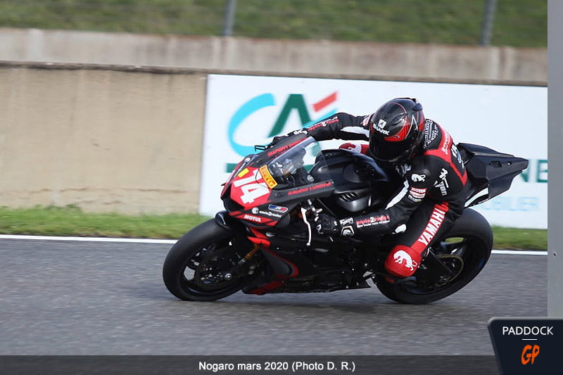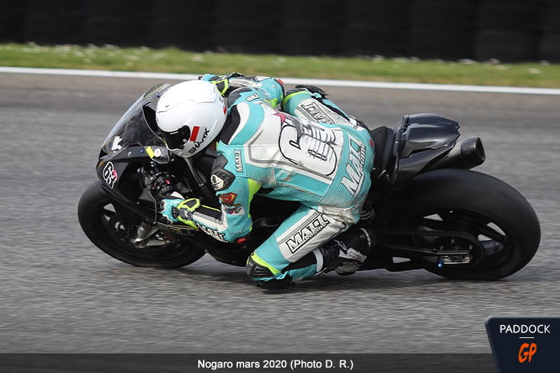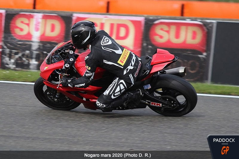 Valentin Debise : « C’est un roulage organisé par Twist Ring Racing, dont le patron, Pablo, est d’origine allemande, comme son prénom ne l’indique pas. Vu qu’il n’y a pas d’essais pré-saison pour le championnat de France, contrairement à ce qui se passe en MotoGP, il organise maintenant ce roulage chaque année et cela s’est progressivement imposé comme une référence. Pour cela, il y a une sélection avec un certain chrono obligatoire, et le résultat est qu’il n’y a que des équipes de course et des pilotes de course, avec seulement des grosses motos puisque c’est interdit aux 300cc. À Nogaro, les pilotes étaient tellement nombreux qu’il a fallu les séparer en deux groupes, le vert pour les plus rapides et le jaune pour les un peu moins rapides. Grosso modo, pour vous donner une idée, le groupe vert correspondait à du FSBK , avec, que ce soit en 600cc ou en 1000cc, les meilleurs pilotes du championnat, et le groupe jaune à du Promosport. Ce qui est bien, c’est qu’il y a les transpondeurs sur les motos, et c’est donc la première confrontation entre les pilotes de l’année. C’est donc intéressant de s’y rendre car avant cela tout le monde à plus ou moins roulé dans son coin à droite ou à gauche, mais se retrouver tous ensemble à Nogaro permet de se calibrer les uns par rapport aux autres. Même si je faisais pas le championnat de France ces dernières années, je m’y suis toujours rendu pour se remettre un peu dans le rythme, se tirer la bourre avec les copains et voir où on n’en est. »