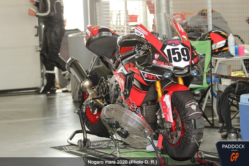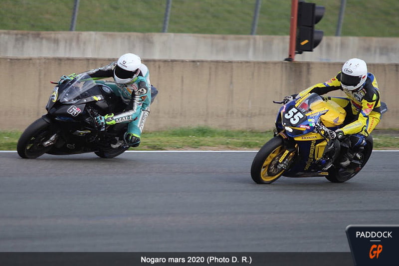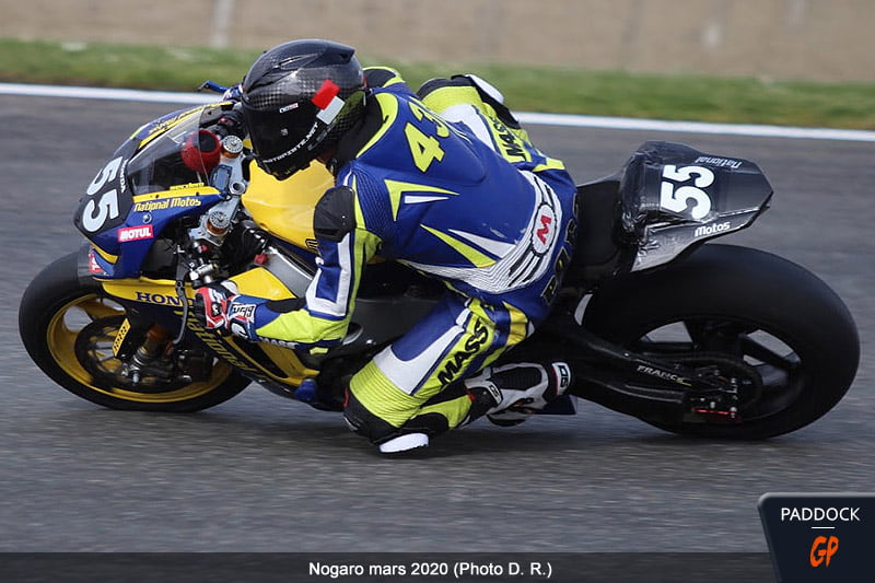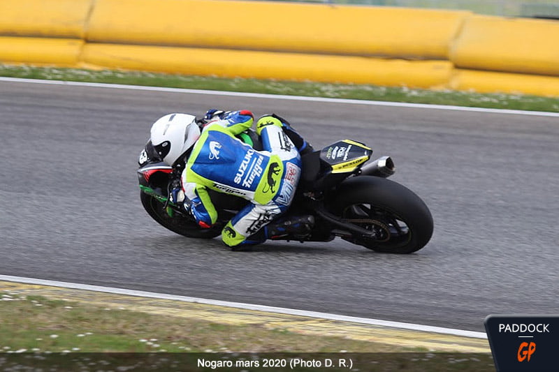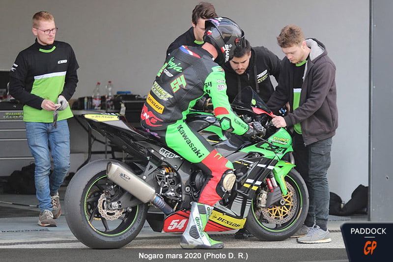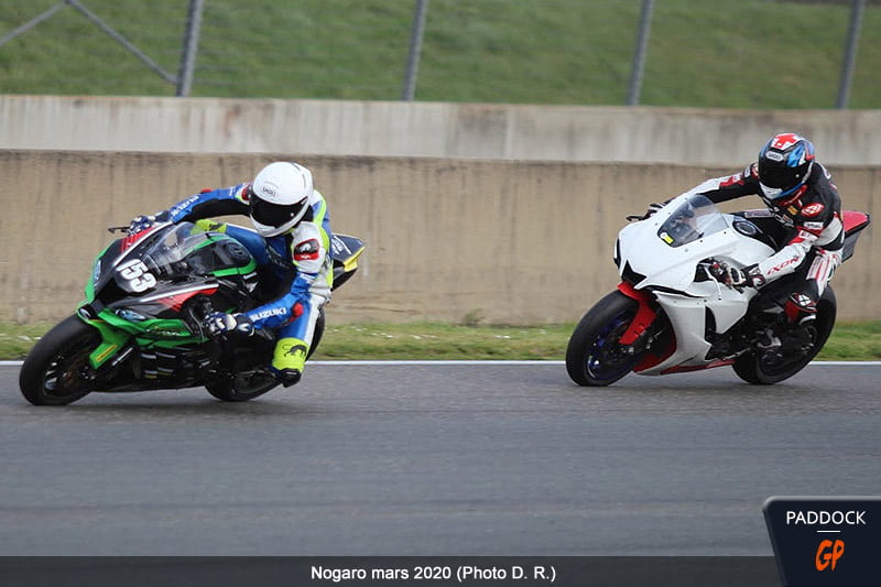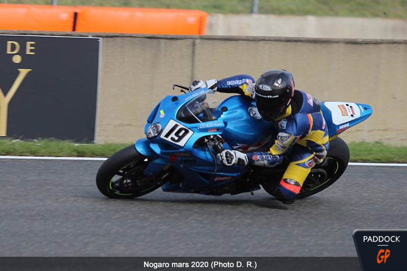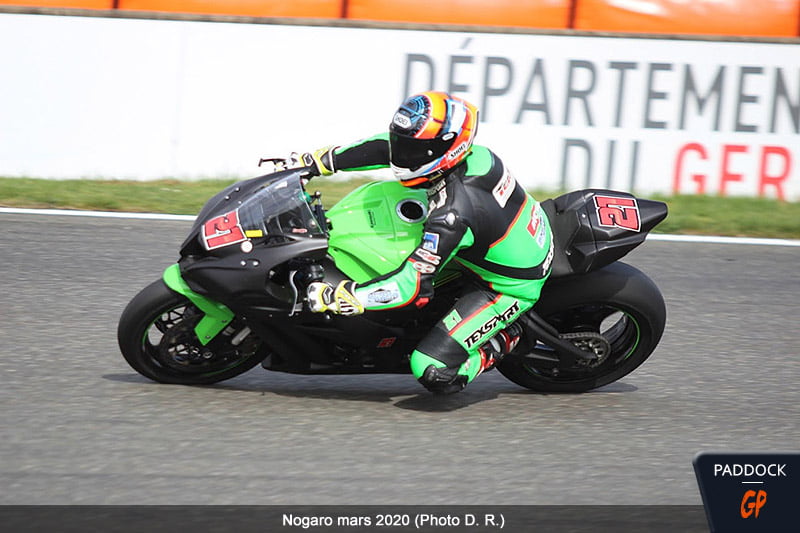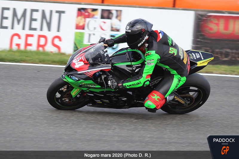 Valentin Debise : « C’est un roulage organisé par Twist Ring Racing, dont le patron, Pablo, est d’origine allemande, comme son prénom ne l’indique pas. Vu qu’il n’y a pas d’essais pré-saison pour le championnat de France, contrairement à ce qui se passe en MotoGP, il organise maintenant ce roulage chaque année et cela s’est progressivement imposé comme une référence. Pour cela, il y a une sélection avec un certain chrono obligatoire, et le résultat est qu’il n’y a que des équipes de course et des pilotes de course, avec seulement des grosses motos puisque c’est interdit aux 300cc. À Nogaro, les pilotes étaient tellement nombreux qu’il a fallu les séparer en deux groupes, le vert pour les plus rapides et le jaune pour les un peu moins rapides. Grosso modo, pour vous donner une idée, le groupe vert correspondait à du FSBK , avec, que ce soit en 600cc ou en 1000cc, les meilleurs pilotes du championnat, et le groupe jaune à du Promosport. Ce qui est bien, c’est qu’il y a les transpondeurs sur les motos, et c’est donc la première confrontation entre les pilotes de l’année. C’est donc intéressant de s’y rendre car avant cela tout le monde à plus ou moins roulé dans son coin à droite ou à gauche, mais se retrouver tous ensemble à Nogaro permet de se calibrer les uns par rapport aux autres. Même si je faisais pas le championnat de France ces dernières années, je m’y suis toujours rendu pour se remettre un peu dans le rythme, se tirer la bourre avec les copains et voir où on n’en est. »