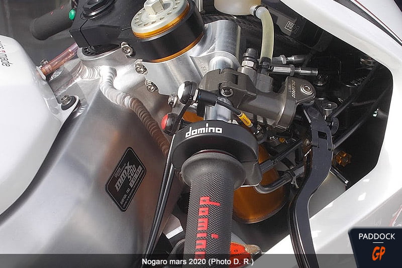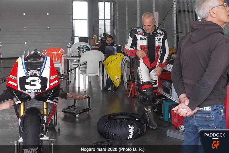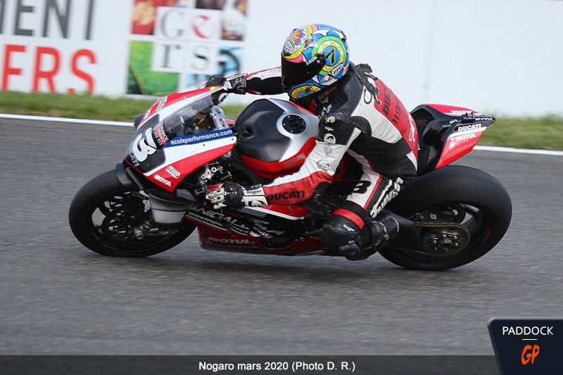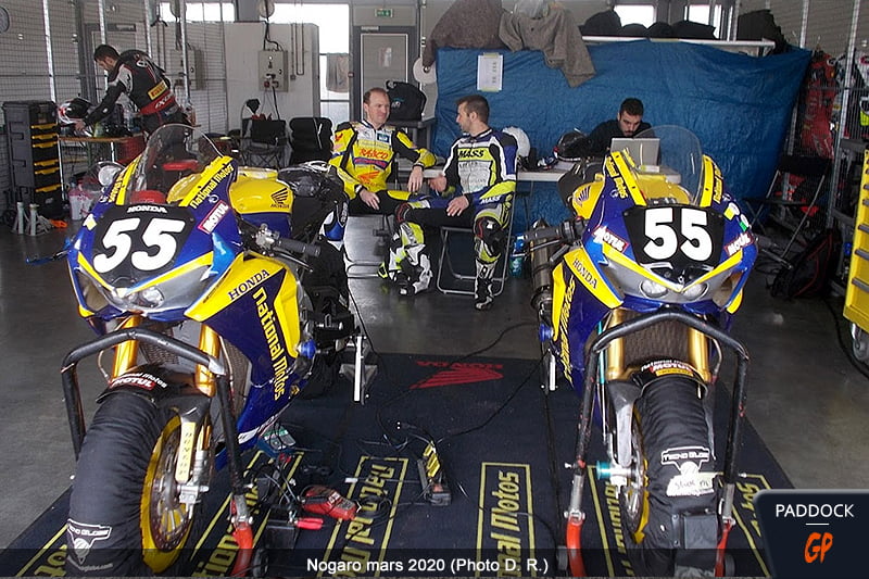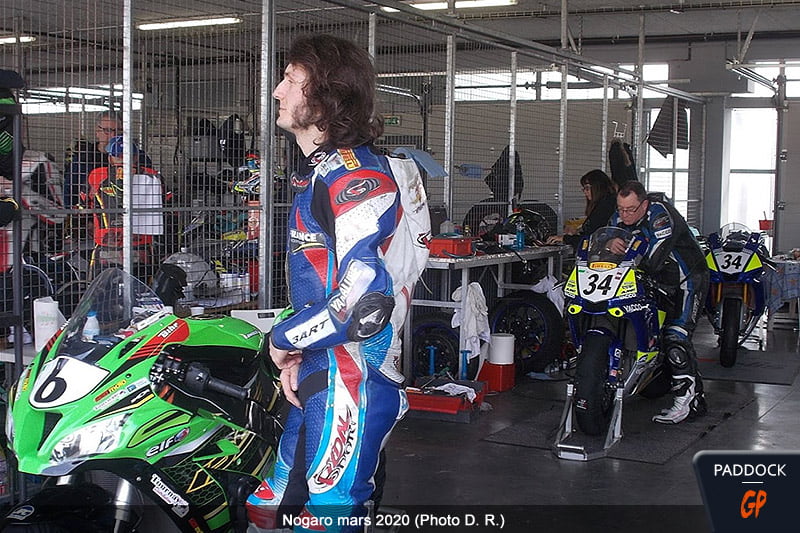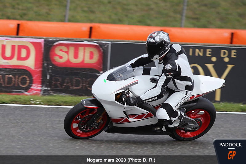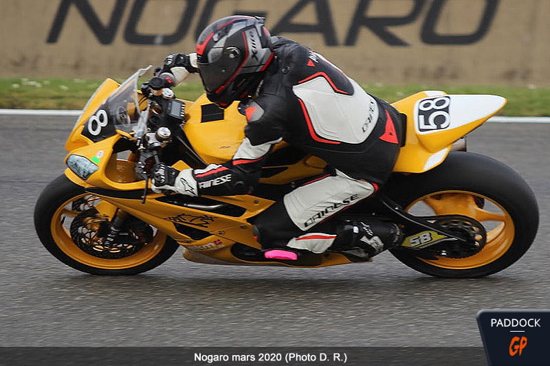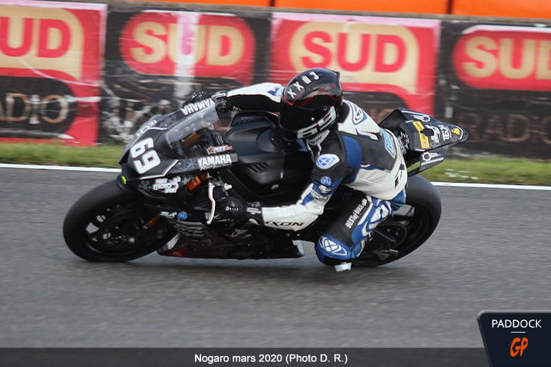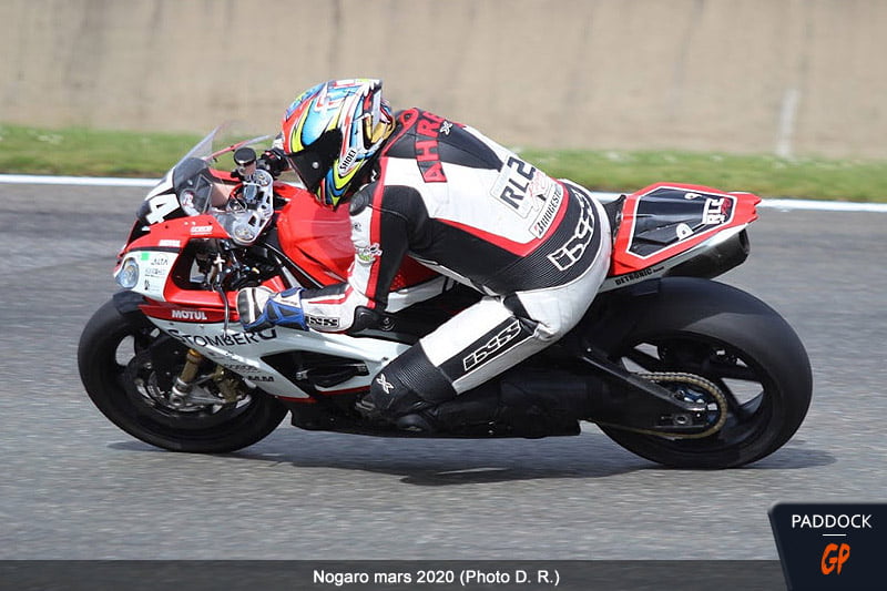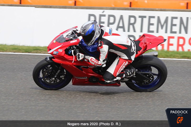 Valentin Debise : « C’est un roulage organisé par Twist Ring Racing, dont le patron, Pablo, est d’origine allemande, comme son prénom ne l’indique pas. Vu qu’il n’y a pas d’essais pré-saison pour le championnat de France, contrairement à ce qui se passe en MotoGP, il organise maintenant ce roulage chaque année et cela s’est progressivement imposé comme une référence. Pour cela, il y a une sélection avec un certain chrono obligatoire, et le résultat est qu’il n’y a que des équipes de course et des pilotes de course, avec seulement des grosses motos puisque c’est interdit aux 300cc. À Nogaro, les pilotes étaient tellement nombreux qu’il a fallu les séparer en deux groupes, le vert pour les plus rapides et le jaune pour les un peu moins rapides. Grosso modo, pour vous donner une idée, le groupe vert correspondait à du FSBK , avec, que ce soit en 600cc ou en 1000cc, les meilleurs pilotes du championnat, et le groupe jaune à du Promosport. Ce qui est bien, c’est qu’il y a les transpondeurs sur les motos, et c’est donc la première confrontation entre les pilotes de l’année. C’est donc intéressant de s’y rendre car avant cela tout le monde à plus ou moins roulé dans son coin à droite ou à gauche, mais se retrouver tous ensemble à Nogaro permet de se calibrer les uns par rapport aux autres. Même si je faisais pas le championnat de France ces dernières années, je m’y suis toujours rendu pour se remettre un peu dans le rythme, se tirer la bourre avec les copains et voir où on n’en est. »