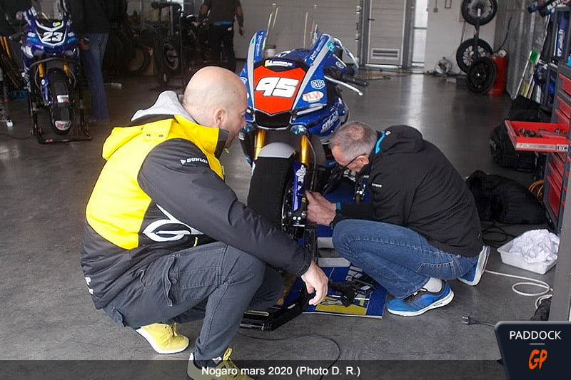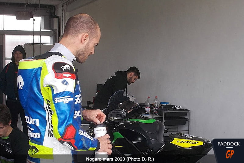 « Cette année, on n’a pas eu trop de chance le premier jour, avec une piste humide, mais on a pu faire pas mal de tours sur le sec durant le deuxième jour. Malgré qu’on n’ait pas énormément roulé, les chronos ont quand même été bons pour pas mal de pilotes. Je pense ceci est dû au fait que les manufacturiers ont pas mal progressé ces dernières années. Michelin était présent, tout comme Dunlop avec son test Team. Il y avait également tous les techniciens des suspensions des différentes marques et tous les gens qui gravitent autour du championnat de France. Au final, notre test s’est bien passé. On a quelques trucs à travailler sur la moto mais je sais exactement ce qu’on doit faire. »