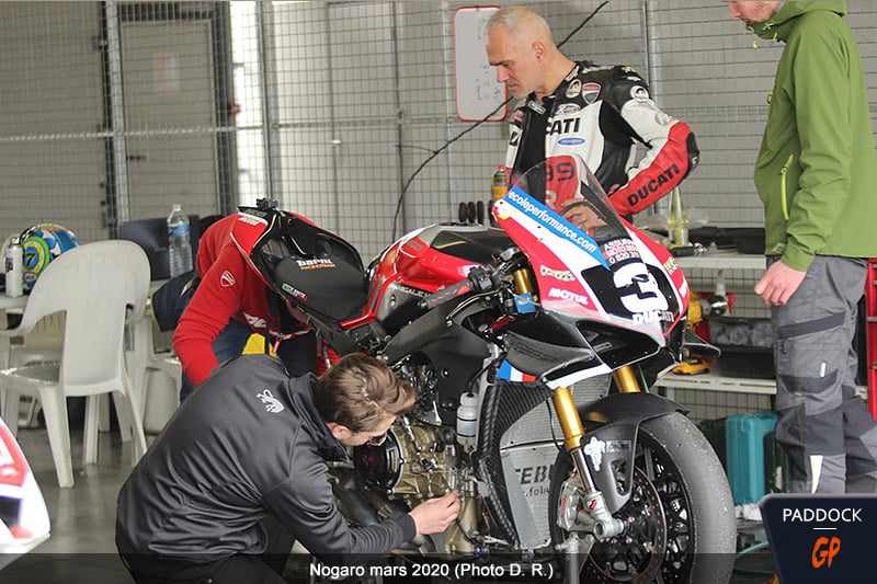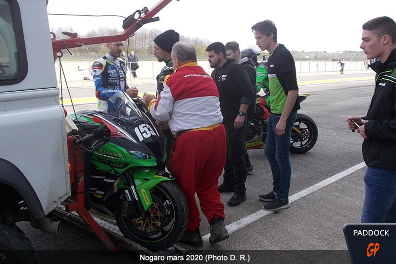 Prenez une équipe du Championnat du monde d’Endurance, la plupart des teams du Championnat de France Superbike, une Suter 4 cylindres 2-temps flambant neuve, ainsi que quelques pilotes du Promosport voulant se faire plaisir, et vous obtenez le roulage d’entraînement qui a eu lieu lundi et mardi derniers sur le circuit de Nogaro, principalement en vu du FSBK.