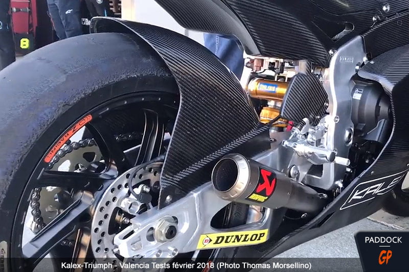 Dans ces conditions un peu difficiles, l’intérêt de ces séances était toutefois moindre et se reportait sur la présence de la Kalex à moteur Triumph (voir photos et vidéos ici), ou plutôt des Kalex, puisque le constructeur allemand avait également apporté un modèle de développement 2018 à moteur Honda.