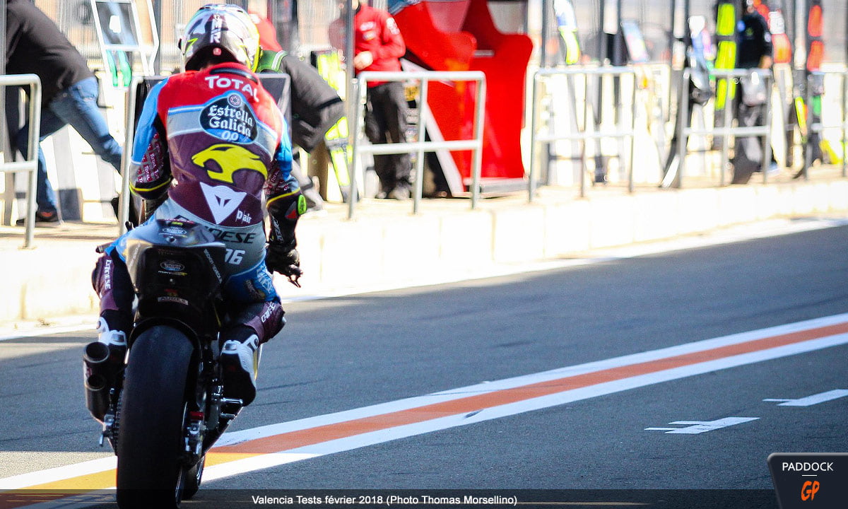Plus ennuyeux pour nous, simples observateurs, l’option Live Timing n’avait pas été prise par RBA, l’organisateur des deux premières journées. Du coup, personne, y compris même sur le circuit, n’avait accès aux temps réalisés par les motos, même si, en se basant sur des chronos pris manuellement, Alex Márquez, Francesco Bagnaia et Iker Lecuona ont semblé particulièrement affûtés. À noter d’ailleurs que les deux pilotes du team Estrella Galicia 0,0 Marc VDS disposaient chacun de deux motos, deux 2017 et deux 2018…