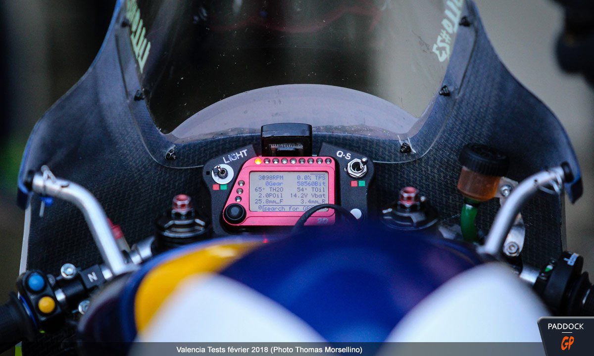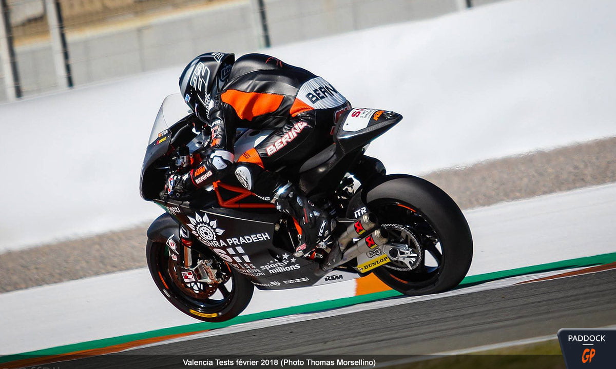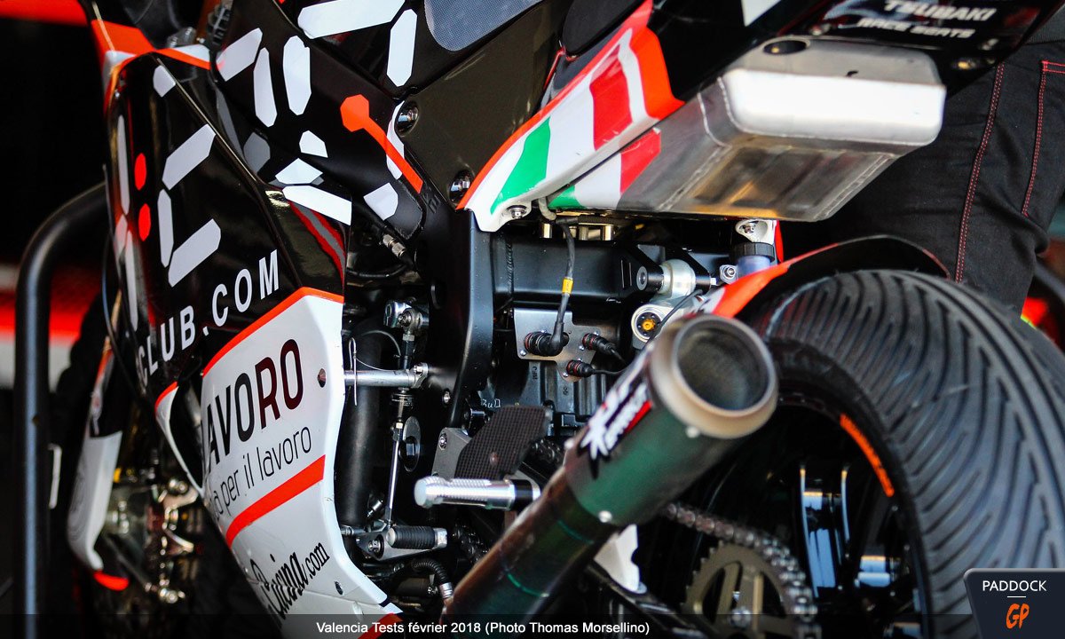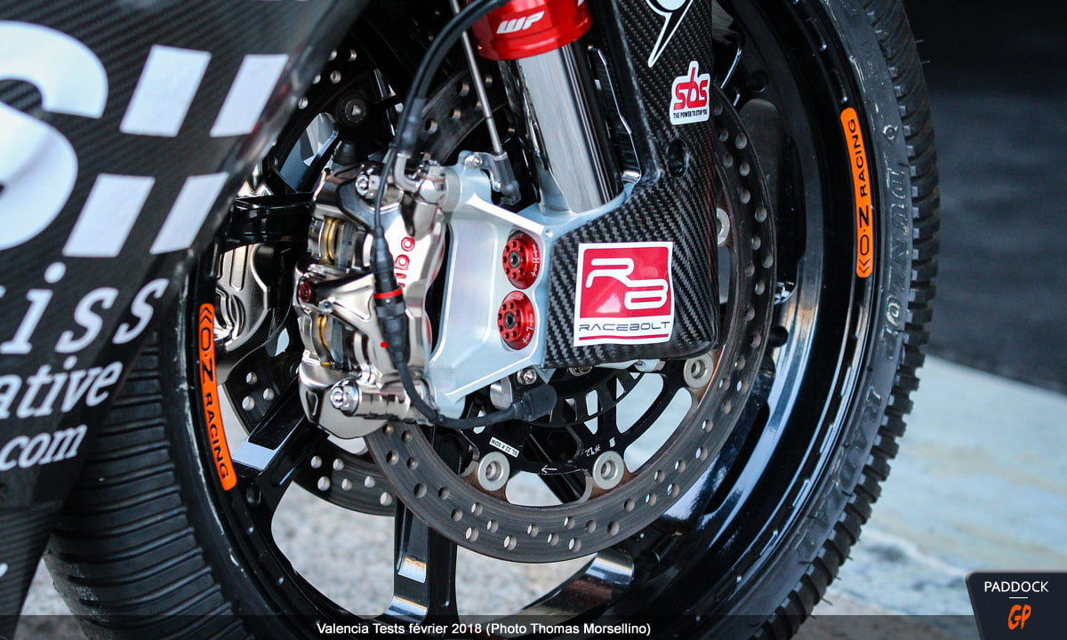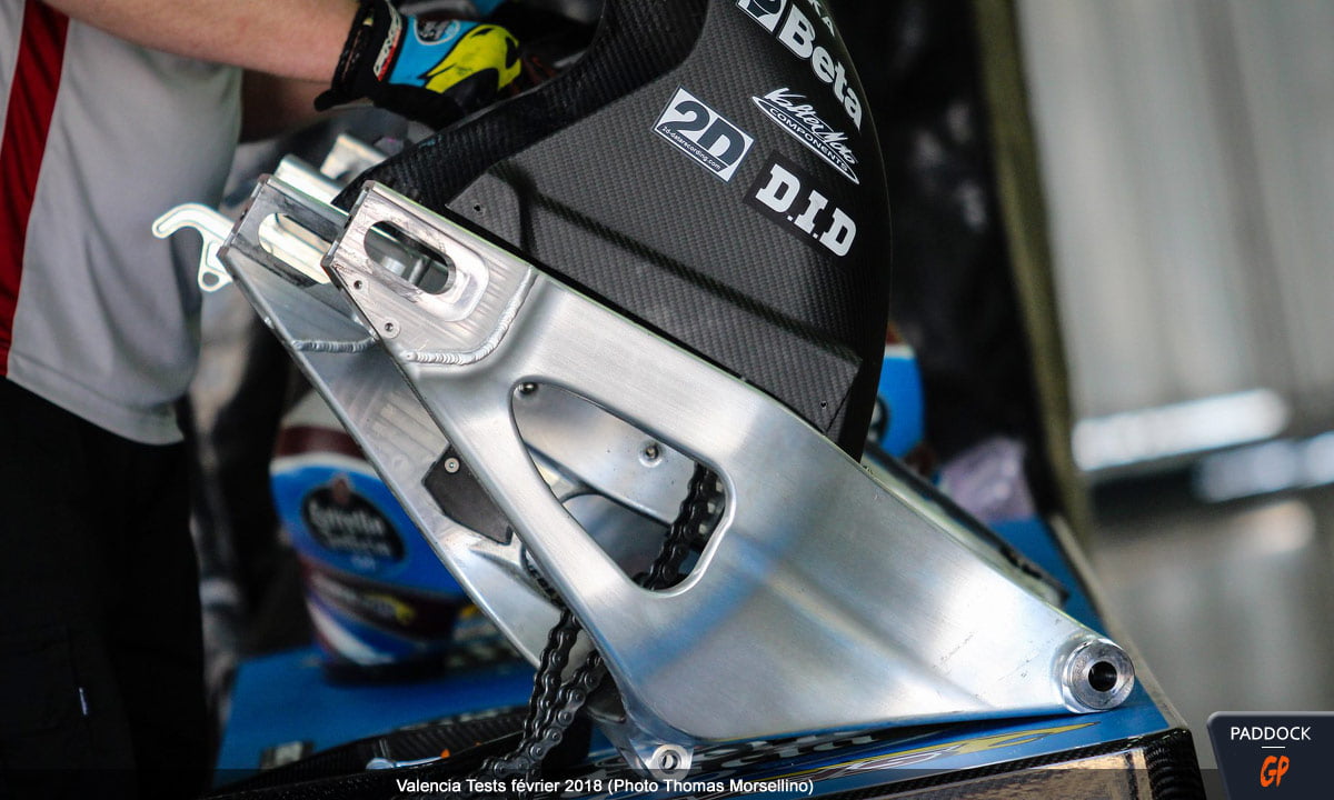 Dans ces conditions un peu difficiles, l’intérêt de ces séances était toutefois moindre et se reportait sur la présence de la Kalex à moteur Triumph (voir photos et vidéos ici), ou plutôt des Kalex, puisque le constructeur allemand avait également apporté un modèle de développement 2018 à moteur Honda.