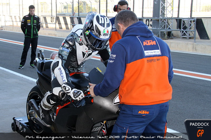 Puis il est monté sur sa KTM RC16 lors des deux journées de test à Valence, et en est ressorti à la 17ème place de la feuille des chronos, à 1,878 seconde du meilleur temps réalisé par Maverick Viñales sur sa Yamaha.