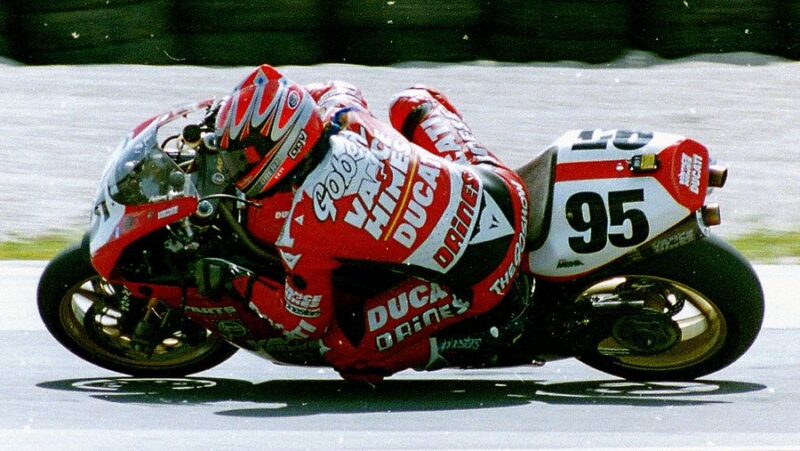 Entre temps, son addiction à au cannabis lui avait coûté sa place outre Atlantique. 2000 est marquée par une magnifique victoire en WSBK sous la pluie, toujours sur les collines de Phillip Island (tout un symbole), alors qu’il pilotait une Bimota peu performante.