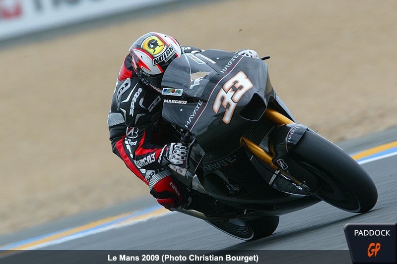 Olivier Jacque : « Peut-être que je piloterai, mais notre objectif ce week-end est d’obtenir un maximum d’informations avec Marco, afin d’étudier les performances de la moto par rapport aux autres. Ma mission est de conseiller Hayate pour régler la machine, et d’aider Marco à tirer le meilleur de la moto. Nous verrons si je continue à travailler durant le saison 2009. Tant que le budget le permet, nous pourrons faire d’autres tests. Pour le moment nous commencerons comme ça. Le développement de la moto est arrêté pour l’instant. Marco doit la régler pour son propre style de pilotage et nous devrons travailler à partir de ses commentaires après les courses. En ce qui concerne le châssis, nous avions découvert un problème à l’arrière que nous avons résolu après le premier test, et j’avais tout de suite aimé son comportement de l’avant. J’espère l’aider à garder sa motivation parce que travailler tout seul dans un team n’a rien de facile, surtout dans la situation de ce team, alors il a besoin d’avoir du soutien et de faire confiance à son équipe. Il sait que tout le monde fera de son mieux pour lui, et j’essayerai aussi de l’aider autant que possible. Je pense que cette moto à un bon potentiel. Marco est intelligent et s’il veut courir aux avant-postes, il y arrivera. Il a le potentiel. »